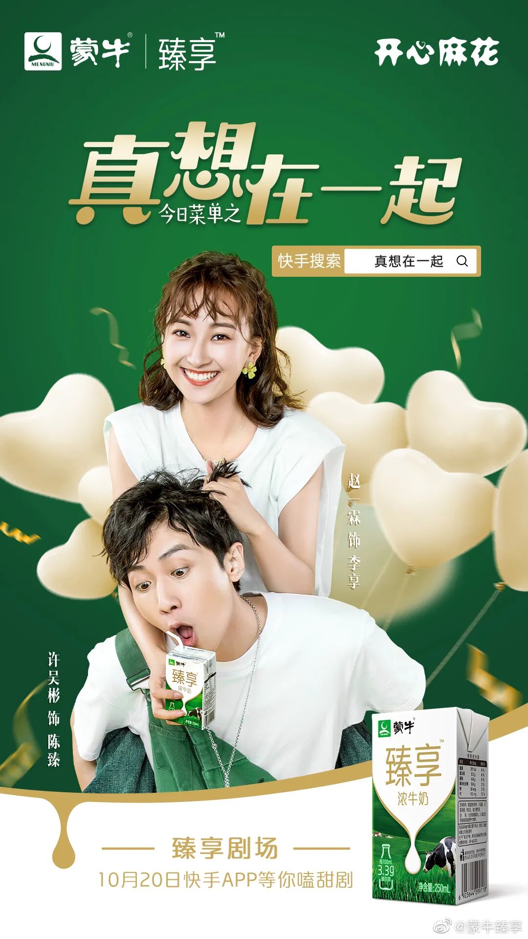 还有第二集女主看到男主在椅子上睡倒时的内心独白:“昨天被我关在门外肯定没睡好,又喝了浓牛奶,估计一时半会儿是醒不过来了”,也是很诙谐又硬核地表现出臻享浓牛奶的营养价值。到了故事发展的后期,蒙牛臻享浓牛奶更是成为剧情转折的关键要素,以及男女主感情升温的强力助攻。第四集,李享让陈臻尝自己做的双皮奶点心,一口下去,陈臻整个人几近灵魂出窍的地步,对其浓香口感赞不绝口,问后才知道这是用臻享浓牛奶做成的。紧接着,李享提出要在陈臻的店里卖双皮奶,然后两个人开始同心协力,为了把双皮奶卖得更好为小店赚钱、为自己翻盘而一起出谋划策。从之后的剧情来看,这份由臻享浓牛奶特制的双皮奶,也成为男女主之间类似定情信物一般的存在,并因此为臻享带来更多品牌曝光。到后面第七集的时候,陈臻在“黑帮老大”的示威建议下,将店名从“精捂门”改成了“臻享吃点啥”,也是剧情发展的重要情节。不得不说,开心麻花对于蒙牛臻享的植入是更为高级的植入,不仅不影响观感让观众更乐意接受,而且还为剧情起到锦上添花的作用,不会因广告而为剧本身带来负面评价。就在小编以为通篇都是高级营销的时候,导演在最后一集给大家来了个反转——不仅剧情成为“剧中剧”,剧中导演对于蒙牛臻享浓牛奶植入的要求也骤然变成了:“谁让你们这么演的?啊?金主爸爸都不乐意了!道具拿来,待会啊,关老师你就拿着这个牛奶推过去推过来,推过去推过来,就行了。”总之,《真想在一起》短剧的热播,不仅不辱使命地完成了金主爸爸对于这次品牌营销的期望,刺激了销量,也能讨巧地为年轻人打发碎片化时间提供好的追剧素材,以此建立对于蒙牛臻享品牌及其产品的立体认知。接下来我们就来分析一下这次《真想在一起》短剧为何好评如潮?促成这次三方“大佬”合作的背后缘由有哪些?这次合作又何以破壁出圈?随着现代生活节奏加快,人们时间碎片化加重,短视频顺势兴起,它对于年轻一代来说是一个更下沉的窗口,且本身就具备让喜剧生根发芽的土壤;而短剧则凭借其故事的连贯性和延展性,被品牌方看作是更幼稚的品牌植入媒介;再加上快手拥有庞大粉丝基础,对于赞助品牌和剧目IP而言都是有强大的用户优势。这些或许就是促成这次蒙牛臻享、开心麻花、快手三方合作《真想在一起》的基础。1、品牌力和产品力是底气,为寻求优质合作伙伴奠定基础臻享是蒙牛于2018年推出的白奶新品牌,与一般强调健康属性的白奶不同,臻享的核心价值主张是“营养香浓,臻享美味”,兼具营养与口感。产品在包装上就着重强调了“浓牛奶”的特点,以及其3.3g/100ml的高蛋白含量。因此我们在短剧中便能频繁看到人物和剧情对于这一产品特色的不断提及。Foodaily了解到,臻享是蒙牛基于消费者对基础白奶需求多元化发展的市场洞察,在口感白奶品类布局的重要产品,未来将打造成为蒙牛白奶的明星品牌。可见蒙牛对于臻享品牌的重视程度。且就现在的品牌表现而言,在蒙牛前三季度财报中,臻享也为蒙牛的白奶品类增长做出了不小贡献。简言之,有蒙牛这一国民品牌作为背书,再加上臻享品牌对于蒙牛集团战略的重要性,都凸显出臻享浓牛奶强大的的品牌力和产品力,从而为这次蒙牛营销事件寻求优质顶级的合作伙伴提供了基础保障。有人说,这个时代最没有门槛的喜剧舞台,已然变成短视频平台。是的,这一现象已经非常日常化,甚至任何一个没有表演基础的人都可以在这里发表自己的喜剧表演。而毋庸置疑,开心麻花是当之无愧的国民优质喜剧IP,从舞台剧到电影到小品,开心麻花好像做什么像什么。那么对于短视频这样一个拥有强大国民度、能够做到全民参与互动的平台来说,他自然是不会放过的。而从其最终呈现给大家的《真想在一起》短剧来看,开心麻花确实也没有辜负品牌和观众的期望,显示出应有的水准和专业度,把剧情内容和广告植入的融合做到淋漓尽致,让一部充满商业气息的剧也能收获大众粉丝,并为赞助品牌带来价值效益。相信蒙牛也是看中了这一点,才选择和开心麻花联手,打造这样一部有趣且高质量的短剧。如大家所见,以内容为中心驱动力的短视频、短剧营销发展趋势近来愈发明显。据Foodaily了解,快手小剧场频道自2019年4月上线快手,是快手对短剧进行体系化管理的开始。而随着内容储备不断丰富,用户观看热度随之升高,也使得短剧成为快手内容消费核心的驱动力。在此背景下,快手通过创意短剧打通场景营销,先通过有趣的剧情内容激发用户的观看兴趣,然后再通过合理的产品植入,让用户在接收产品信息上,从以往的“被动”逐渐向“主动”过渡。这是短视频领域巨头快手在接下来的重要发展举措,也是平台将大力扶持的方向。因此,此次《真想在一起》短剧选择在快手独播也是顺其自然,而快手既可以得到开心麻花IP带来的新粉丝用户,也有蒙牛这样的国民品牌作为植入产品的强力背书,为平台的新策略积累人气和口碑。总而言之,不管营销手段强不强,产品品质才是考验产品力和品牌力的终极核心。在保证了产品品质后,蒙牛臻享通过联合开心麻花这样的优质内容IP创作接地气的短剧来打通消费场景,并借助快手平台的资源优势,让大范围的消费者能够看到这个内容,而且在第一次看到视频后产生兴趣,并在后续接收到品牌植入