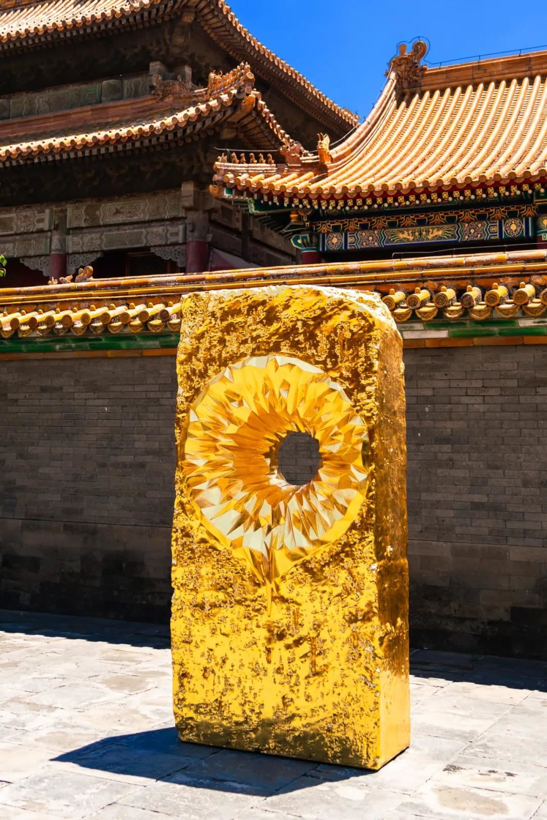 《金砖》系列作品是王开方最具影响力和代表性的作品,以鲜明独特又独具风格的艺术语言表现“金”,将科学、艺术与信仰相结合,既具前瞻性,也具未来感。王开方众多的金砖作品,都存在着一种强烈的交流感,让艺术品与欣赏者互动,进而生动诠释平凡板砖化为不朽金砖的欲望与进取,极富力量感。