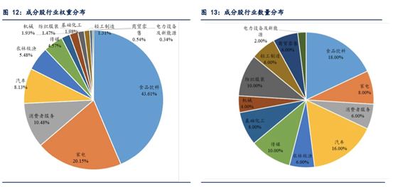 从2010年开始,消费对中国GDP的贡献开始逐年上升,并逐渐超越投资,成为经济发展的新动能。而在消费升级的大趋势下,食品饮料行业的表现格外亮眼:以中证消费龙头指数的行业进行分类,食品饮料行业股票占其数量的18%,权重却达到43.61%