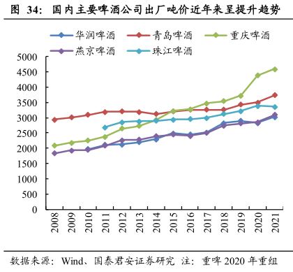 面对成本普涨,21年以来啤酒企业普遍提价来缓解。由于啤酒行业产品结构较快升级的趋势不变,且中档产品竞争格局优化,前期提价传导反馈较顺利,终端及消费者接受度较好。