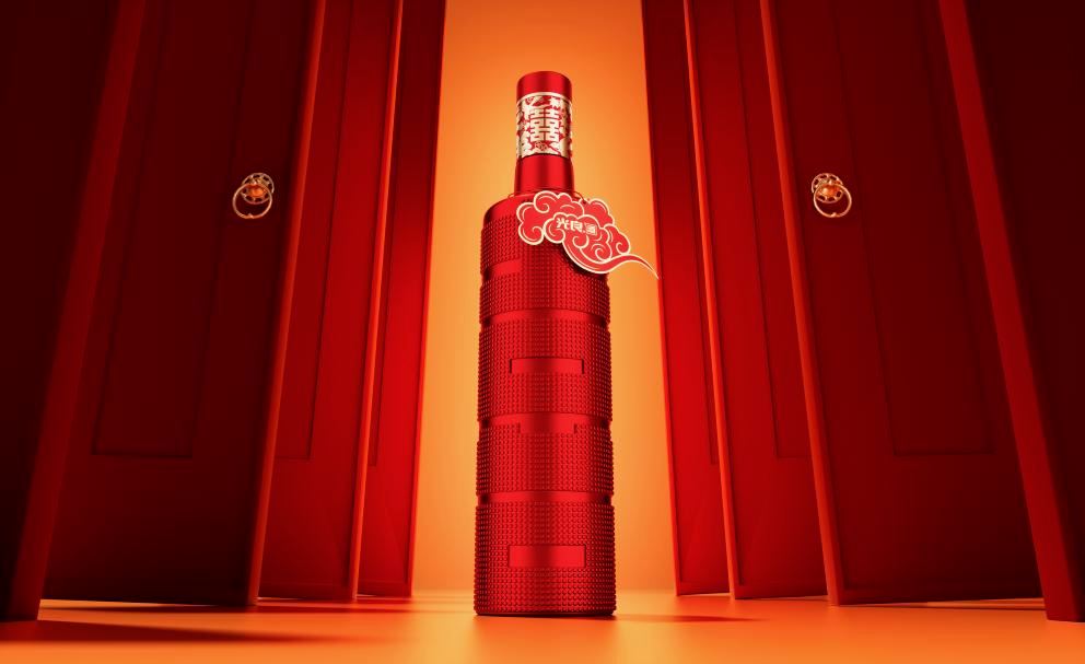 光良大喜酒贯彻光良一直以来的现代简洁理念,瓶形在光良59的基础上进行了延展设计,为契合喜庆的氛围,光良大喜酒通体采用典雅庄重的正红色,喷漆工艺质感十足。瓶身上用浮雕工艺突出双面“喜”字,以此表达“一瓶为喜,双瓶呈囍,双喜临门,喜从中来”的美好寓意。瓶颈处配上祥云样式的品牌挂牌,既突出吉祥寓意又展示了产品信息。