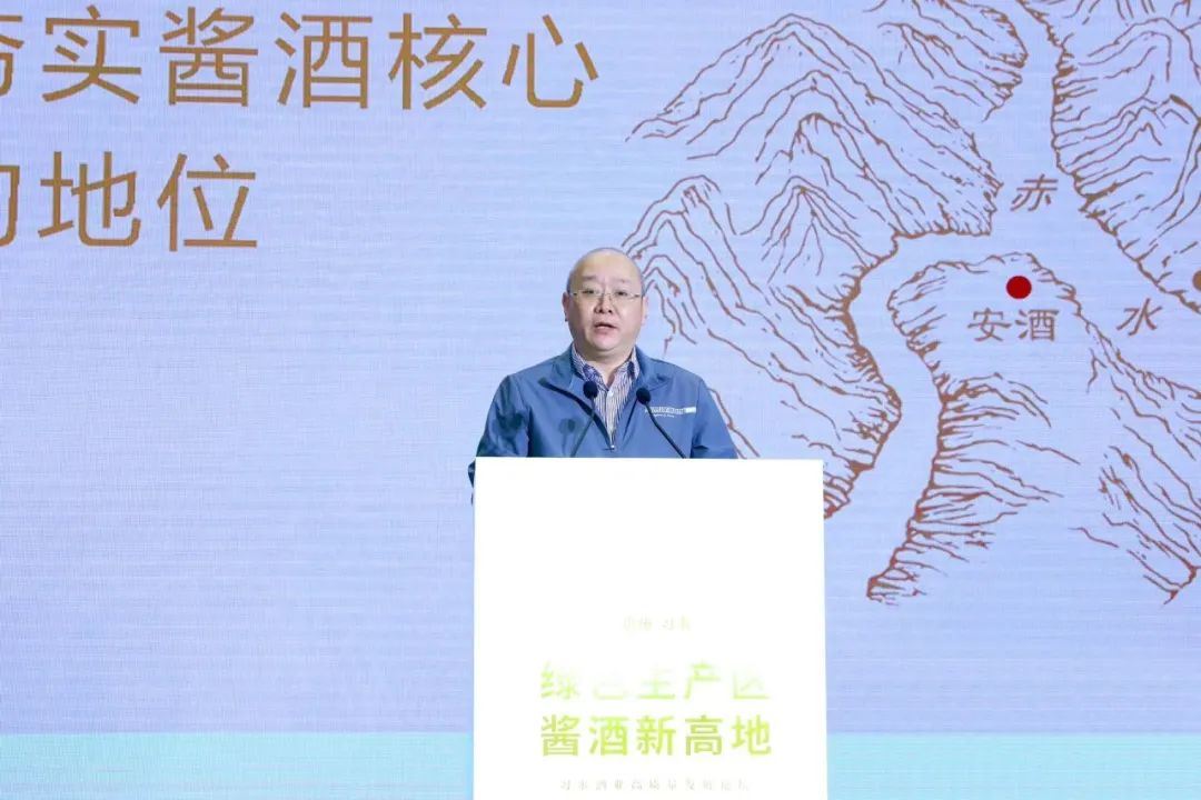 论坛中,贵州安酒集团副总裁、销售中心总经理谭小林做了《选择绿色,就是选择未来》主题发言,和与会嘉宾分享“习水产区绿色发展”之道,以及推动习水产区高质量发展的“赤水酒谷”力量。