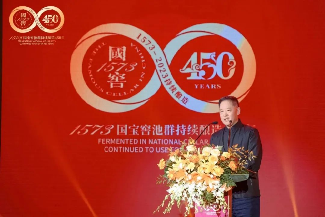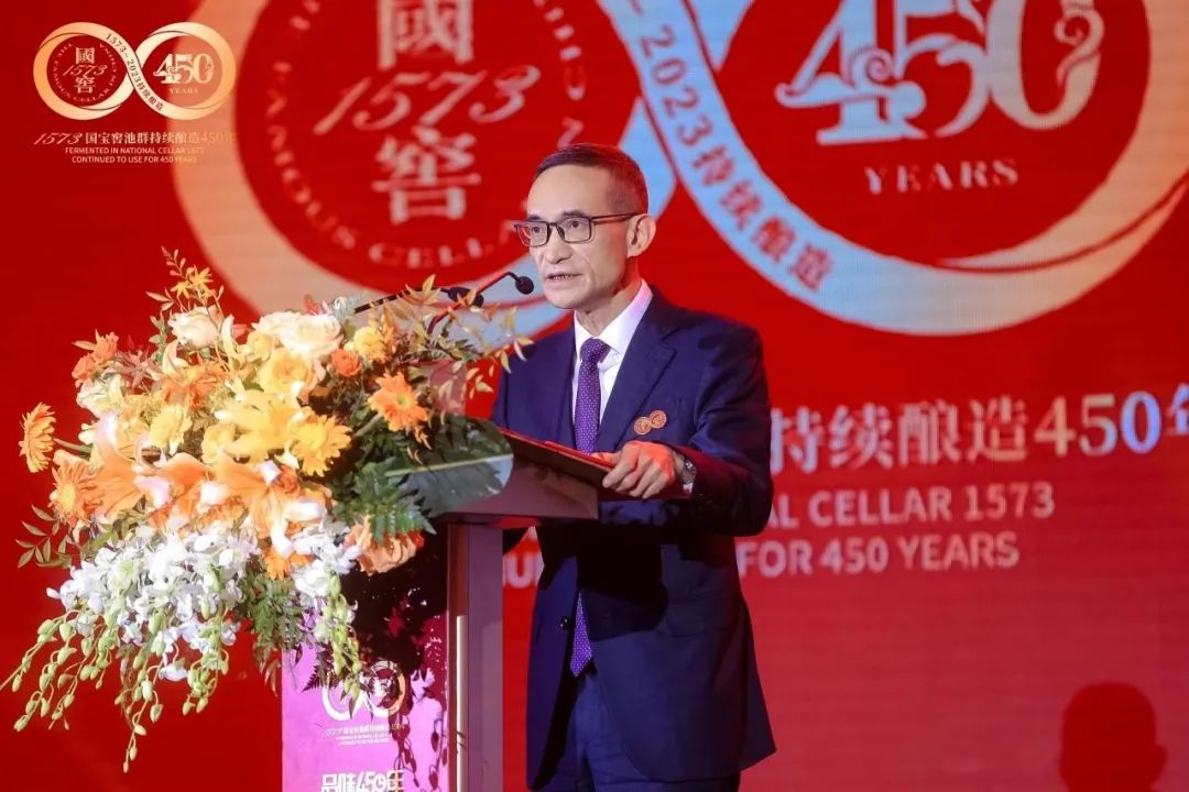 2023年,恰逢泸州老窖·1573国宝窖池群持续酿造、静默生香的第450个年头。450年波澜壮阔,450年薪火相传,为华夏酒业带来了一段荣耀传奇,也给消费者留下了诸多老酒珍品。泸州老窖股份有限公司党委委员、副总经理、首席质量官何诚在致辞中,提出了瓶储年份酒的四大标杆:文化标杆、消费标杆、投资标杆和行业标杆。