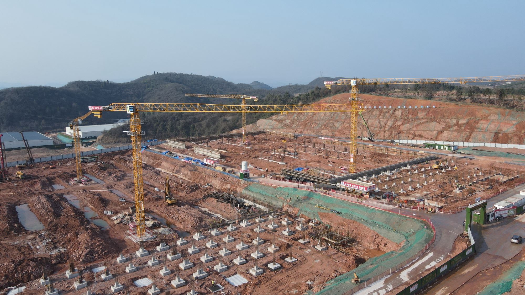 暖阳映照,春风吹拂。来到稻花香万吨馫香型白酒智能化酿造基地,只见塔吊擎起巨臂来回转动,伴随着机器的轰鸣声,窖池外侧挡水墙防水、桩基础施工、边坡道路整形、陶坛酒库室内外安装工程施工……一项项指令有序部署,一道道工序安全推进,工人们分工作业,施工现场活力满满。