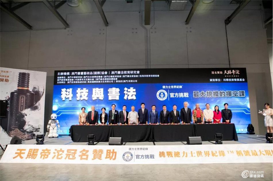 10月13日,在澳门威尼斯人金光会展中心,由天赐帝沱联合澳门书画艺术品(国际)协会及书法教育研究会举办的书法盛事,2671名参与者同时挥毫写“寿”字,成功创下吉尼斯世界纪录。天赐帝沱以酒为媒,跨界书法艺术,是品牌打响“文化+”战略的重要举措。