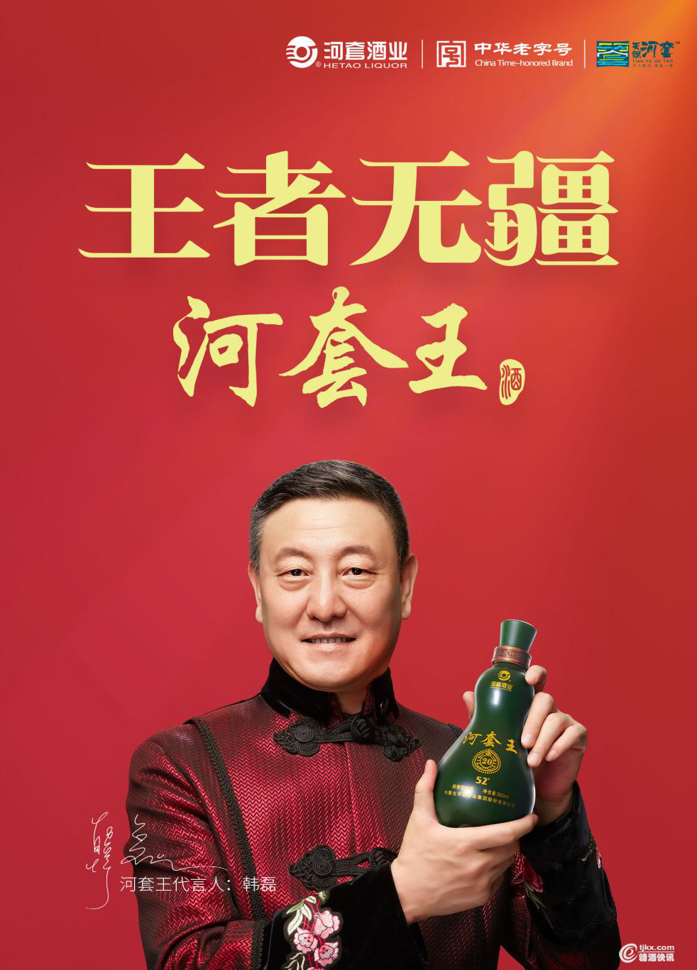 2018年以来,河套酒业选择了内蒙古大地上走出的歌王韩磊作为河套王酒的品牌形象代言人。因为韩磊所演绎的“王者无疆 河套王”形象广告最能呈现这种“中国名酒”的心声: