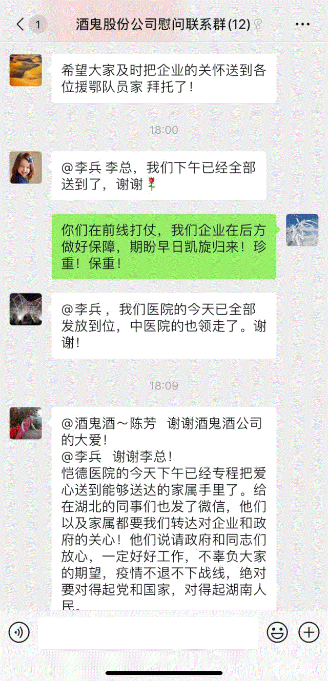 2月27日,酒鬼酒股份有限公司向驰援湖北的株洲医疗队医务人员家属捐赠粮油牛奶等爱心物资,向“最美逆行者”致敬。 株洲市副市长杨胜跃、株洲市委副秘书长尹光良、株洲市卫健委主任张纯良、副主任李晓兵以及酒鬼酒公司领导,共同出席了物资捐赠仪式。 酒鬼酒公司组织的 “加油,大后方”关爱株洲援鄂医疗队家属公益活动,采购了中粮集团旗下的食用油、大米、牛奶以及酒鬼酒、内参酒礼品盒组成慰问礼包,捐赠给株洲驰援湖北的医务人员家属,向他们表示衷心的问候,也向奋战在一线的医务人员表达崇高的敬意。 据了解,株洲市援鄂的“最美逆行者”,包括了株洲市人民医院、株洲市中心医院、湖南中医药高等专科学校附属第一医院、株洲市三三一医院、株洲市二医院、湖南师范大学附属湘东医院、株洲恺德心血管医院、醴陵市中医院、株洲市疾控中心等单位。