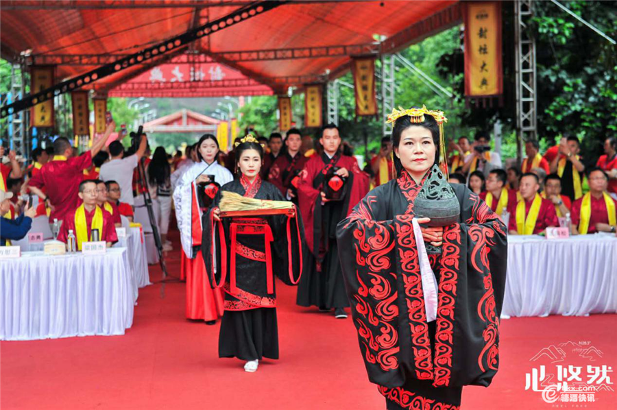 广州珠江云峰控股投资有限公司副总裁梁国杰先生、习水县政协主席王仲勇先生、重庆警备区原副司令员方慰三将军、凤凰网副总编辑李小鸣先生分别致辞,祝贺2020年端午封坛大典的成功举办。