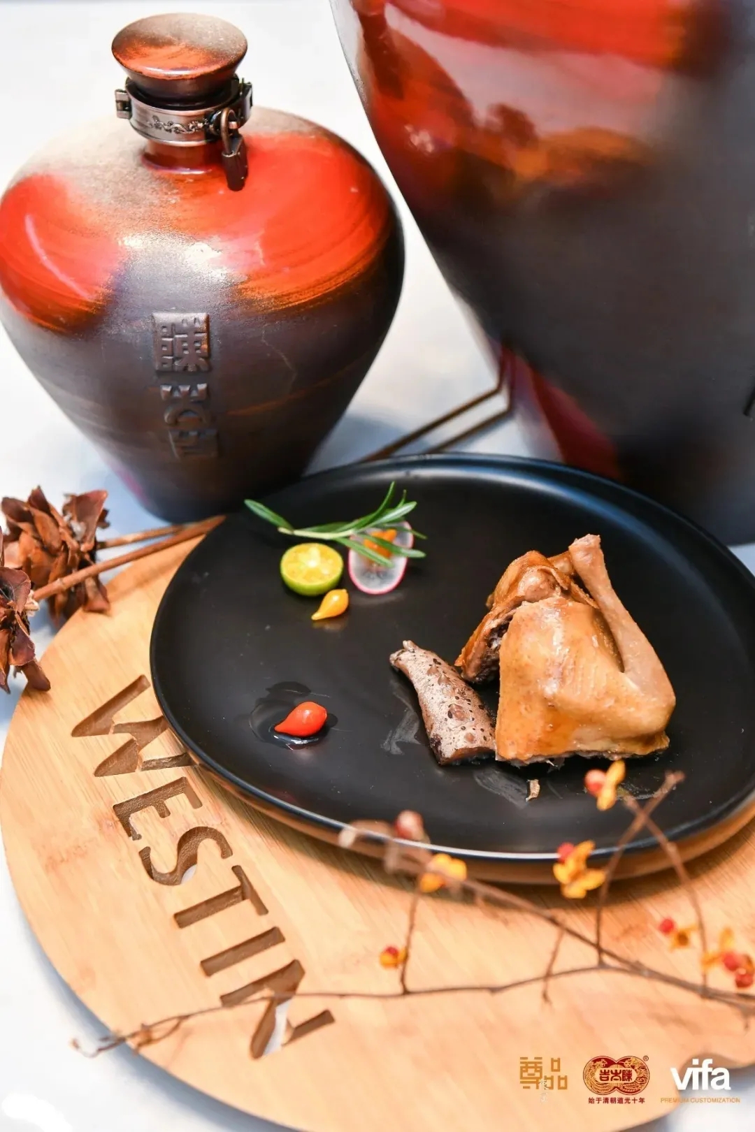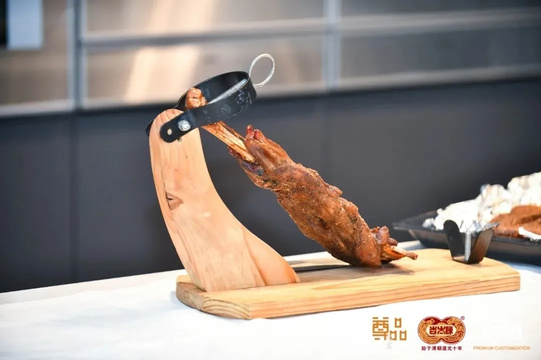 古人云,羊大为“美”,羊肉不止味美,也是冬季滋补圣品。此番食用的羊腿,采用被誉为“羊中贵族”、来自“中国滩羊之乡”的宁夏盐池滩羊,其肉色泽鲜红,脂肪乳白,含脂率低,肌纤维清晰致密,富有韧性和弹性。七味香料与炙烤过的盐粒一起融入到羊肉中,在高温的帮助下产生美妙的化学反应,氨基酸带来绝佳的舌尖体验,释放令人愉悦的香气。细品鲜美羊肉的同时佐以陈太吉酒庄酒,既暖胃又暖心,让人直叹美哉!