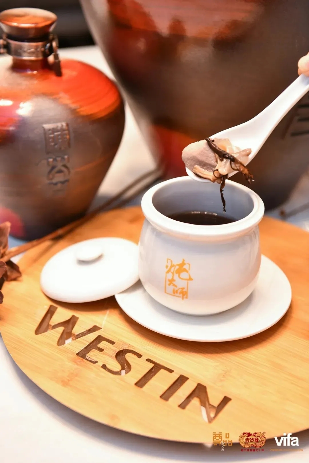 ▲霹雳啪喇火焰盐焗海参乳鸽