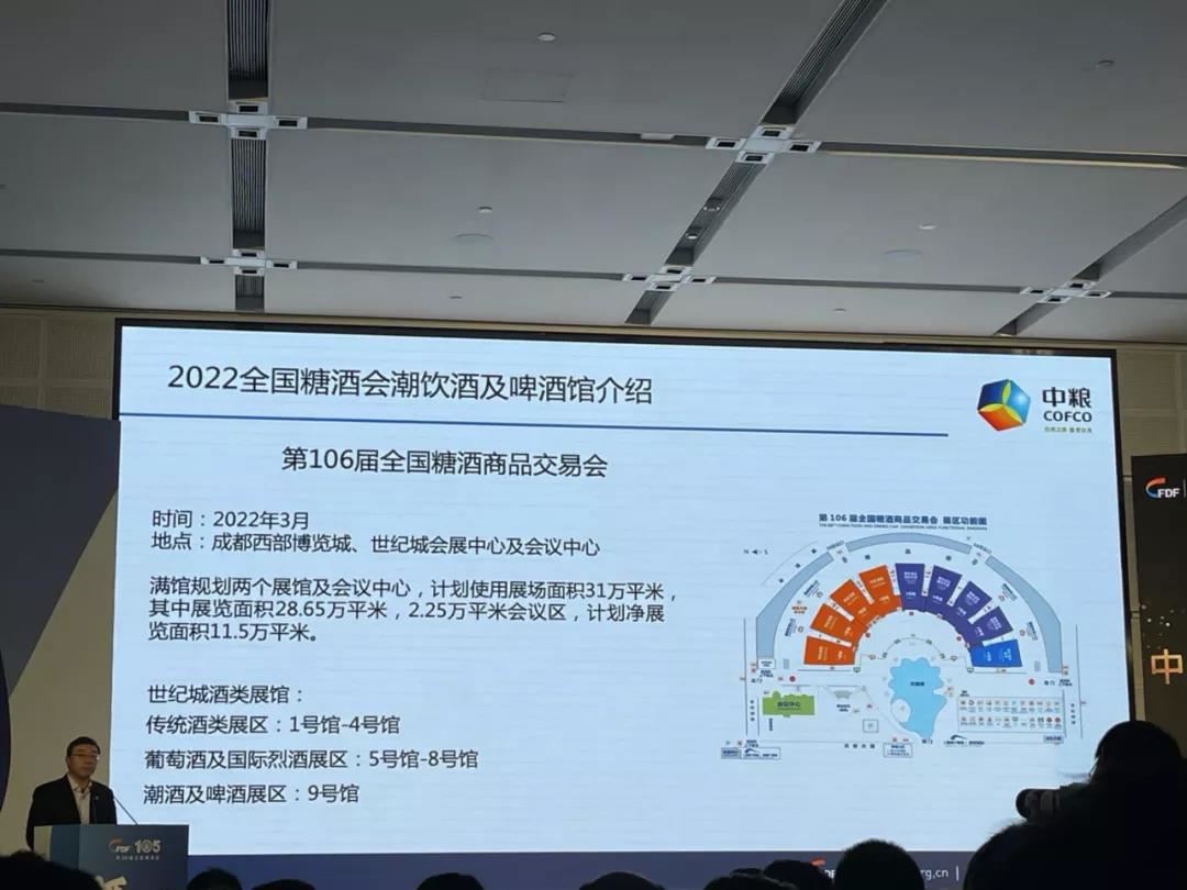 张家鑫在报告中还提到,“潮酒集市”作为低度潮饮在糖酒会场上的“首秀”,他本人对其呈现效果并不满意。随后,他与中粮(北京)会展有限公司董事长杨成刚正式宣布,明年成都春糖期间将在世纪城会展中心开设潮酒及啤酒展区。