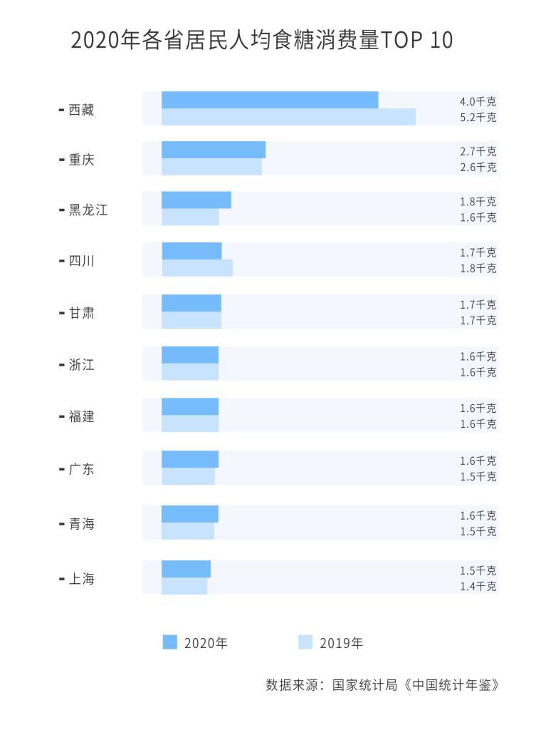 “爱糖地区”TOP10:西藏人均用糖量最高 上海垫底