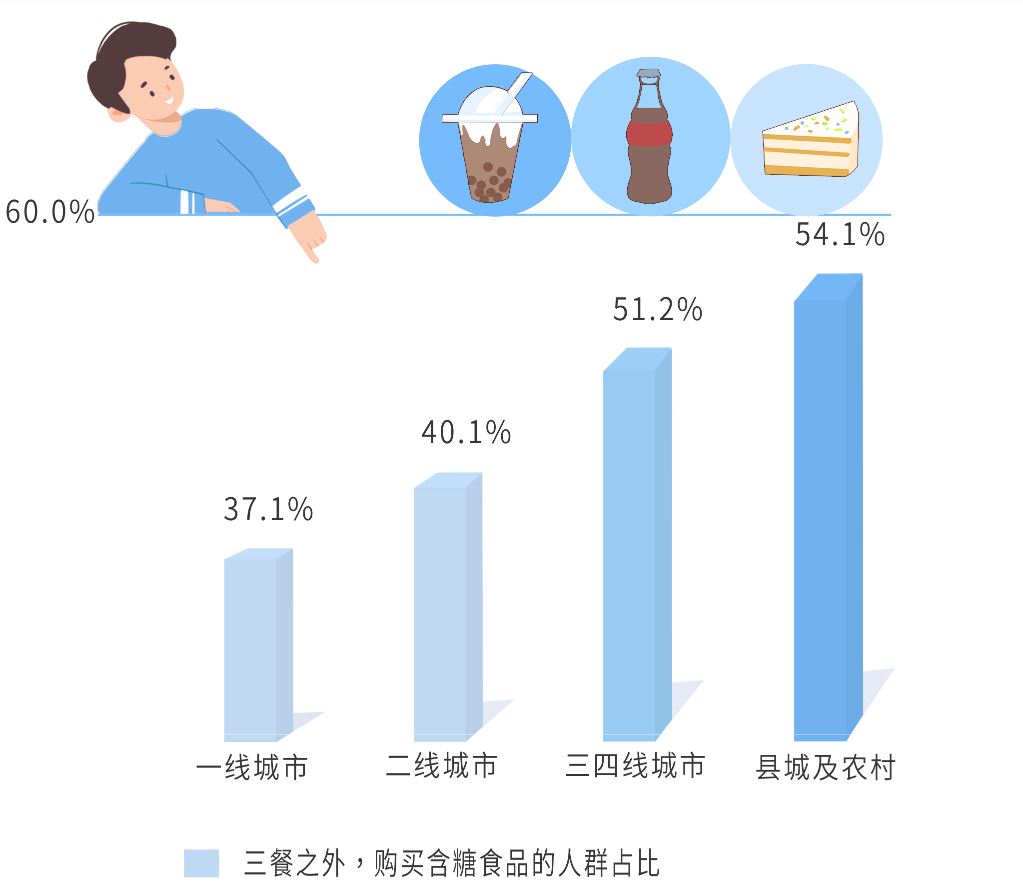 《报告》调查显示,相比发达地区,县城及农村居民更爱吃含糖零食和饮料,他们对过量摄入糖的危害认知较少,因此对减糖概念食品感知度较低。从市场看,县城和农村地区的无糖饮料供应较少,且各类假冒产品较多。