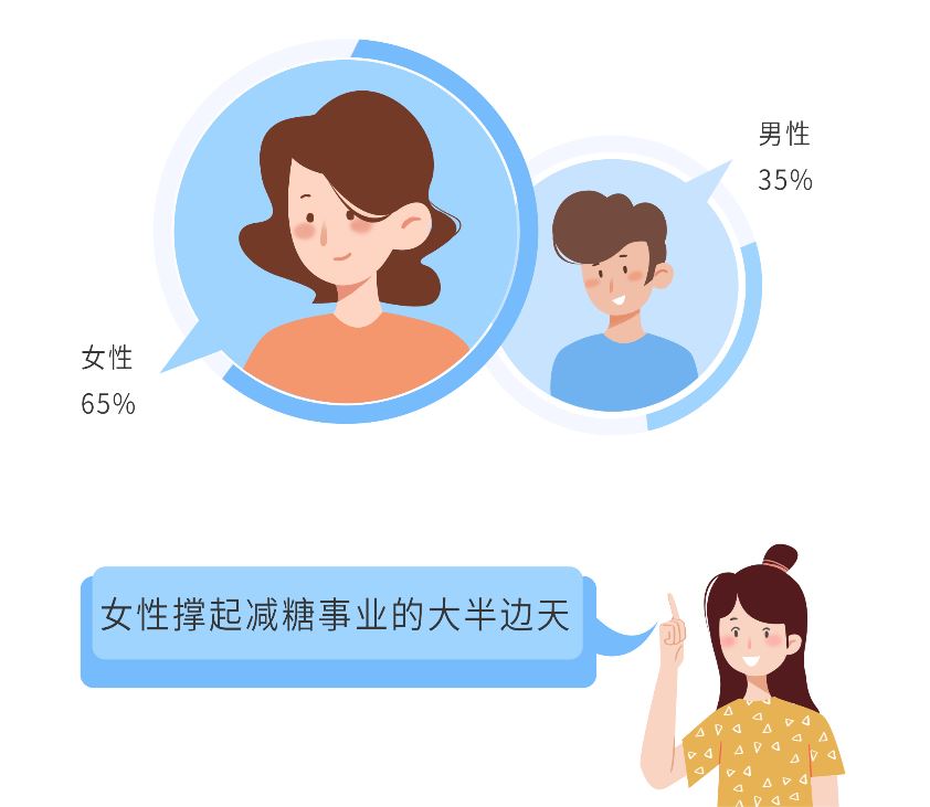 调查显示,女性比男性更热衷于减糖。在被调研的减糖用户中,65%的女性会在日常生活中选择减糖产品,而主动减糖的男性只有35%。