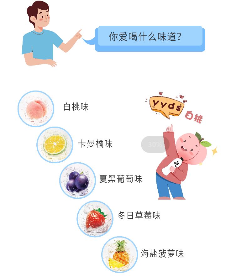 迄今为止,元气森林无糖气泡水共推出19款不同口味。在受访者心目中排名前五名的分别是白桃、卡曼橘、夏黑葡萄、冬日草莓和海燕菠萝。其中,元气森林今年冬限定款冬日草莓口味,刚推出不久就获得了许多减糖用户的喜爱,直接进入TOP5榜单。