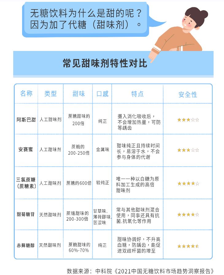 尽管越来越多的年轻人拥抱减糖,但他们依然希望饮料有熟悉的甜味。《报告》援引中科院大数据挖掘与知识管理重点实验室的相关数据显示,相比早期大量使用的人工合成甜味剂(阿斯巴甜、安赛蜜等),近年天然甜味剂占比正在逐步攀升。木糖醇、赤藓糖醇等天然糖醇安全性正在获得更多减糖用户的认可。