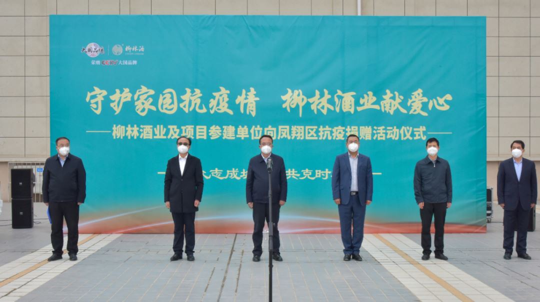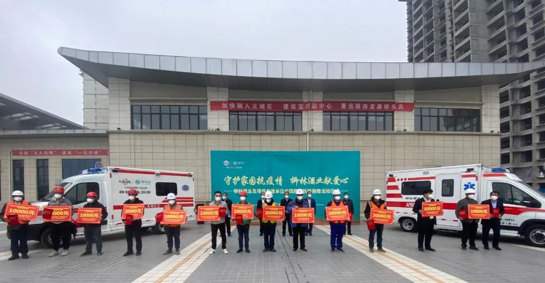 捐赠活动现场,柳林酒业集团提质技改项目各参建单位——河北建设集团、陕西联辰矿山建设、西安鑫泉建材、皖创环保股份、陕西千弘建设、绿通园艺、泸州智通设备等公司纷纷响应,踊跃捐赠善款共计24万元,以大爱之心参与支持凤翔区疫情防控工作。
