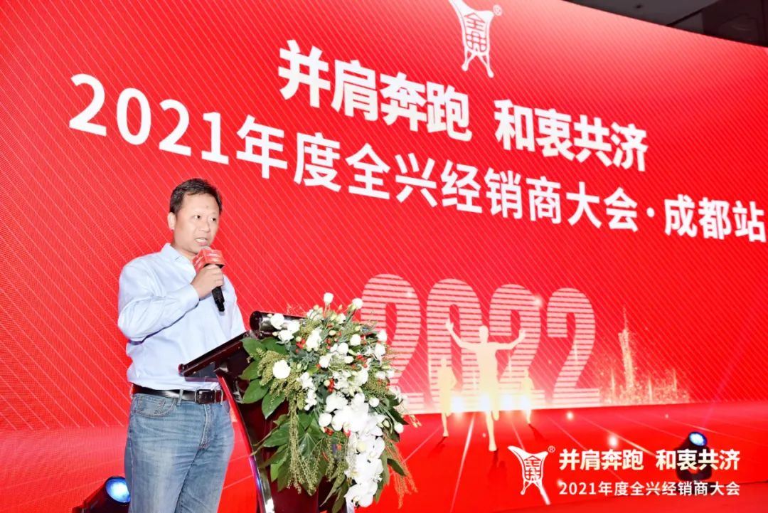 四川全兴酒业有限公司党总支副书记、副总经理俞剑燊现场表示,2022年,全兴将继续携手在座的各位,并肩奔跑,做到心中有信仰,脚下有力量,紧紧把握行业新生态、消费新趋势,将产品做精、市场做透、效率做高、服务做优,为“十四五”的“33·53”目标奋进,实现跨越式的复兴发展,共享名酒发展的红利。