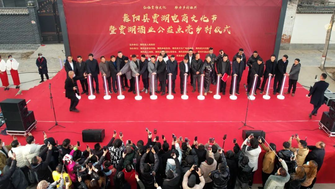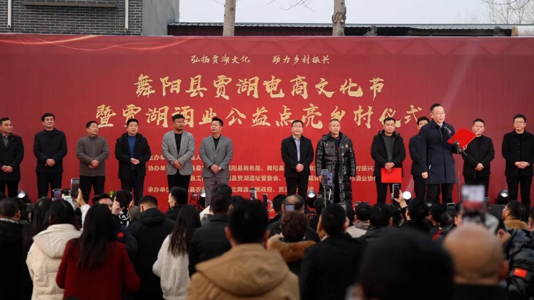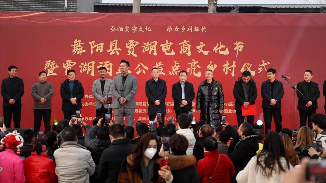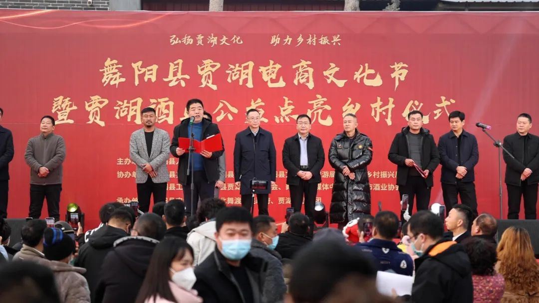 在舞阳县贾湖电商文化节暨贾湖酒业公益点亮乡村仪式现场,北舞渡镇党委书记王旭东为本次活动致欢迎辞。王旭东讲到北舞渡镇是千年古镇,全国农业强镇,河南省历史文化名镇,河南文明乡镇,河南小城镇建设重点镇,北舞渡战国时期称为定陵,此后作为舞阳县政治、经济、文化中心,延续了一千七百多年,到明清之后,这里由舞阳的政治中心转化为商业中心,得天独厚的水路条件,促进了商业的繁荣,成为中原地区重要的商品集散地之一,素有填不满的北舞渡,日进斗金、九门九关小北京的美誉,近年来,北舞渡镇在县委县政府的领导下,在社会各界人士的大力支持下,经济发展突飞猛进,进入2023年,在乡村振兴新的历史时期,为了使贾湖文化及三农产业更好的发展,助力后疫情时期,经济社会复苏,联合贾湖酒业集团,邀请全国知名网红达人,举办贾湖电商文化节,开展电商公益直播活动,通过此次活动,借助电商平台,各位电商网红达人来宣传推介贾湖文化,宣传推介贾湖农产品。