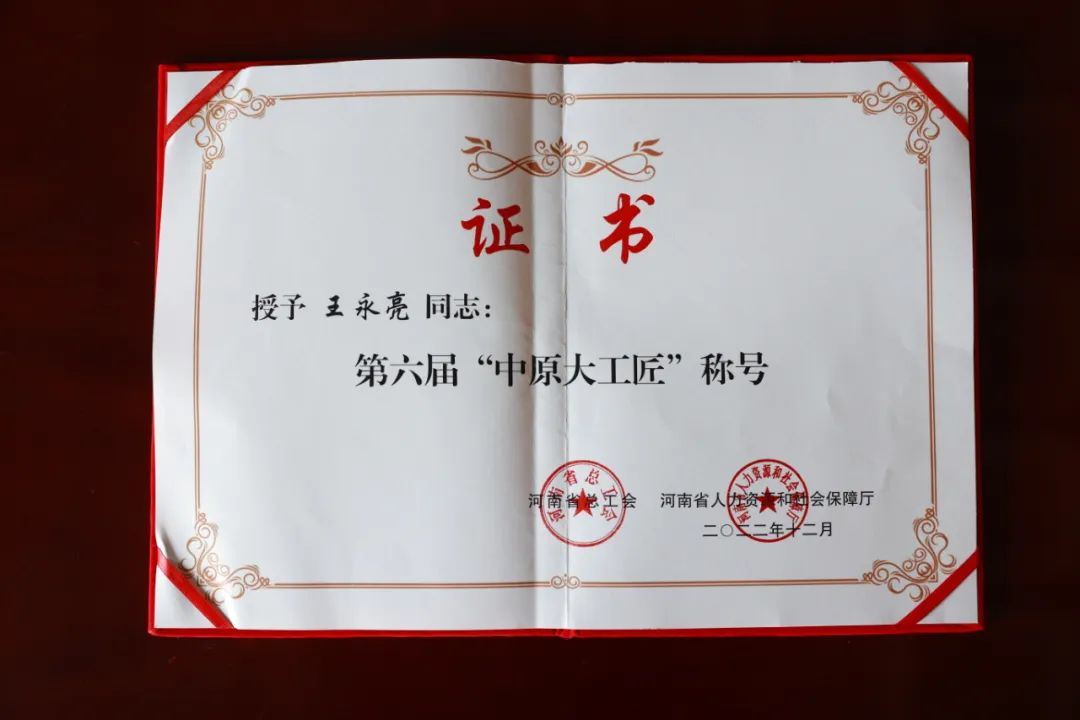 近日,由河南省总工会、河南省人力资源和社会保障厅联合开展的第六届“中原大工匠”评选活动中,贾湖酒业集团副总经理、总工程师王永亮从全省各行业技能人才中脱颖而出,荣获第六届“中原大工匠”称号,漯河市总工会副主席张振凡,舞阳县人大副主任、总工会主席蔡良红,县总工会党组书记、常务副主席李向勇等领导莅临贾湖酒业为其颁发证书奖牌。