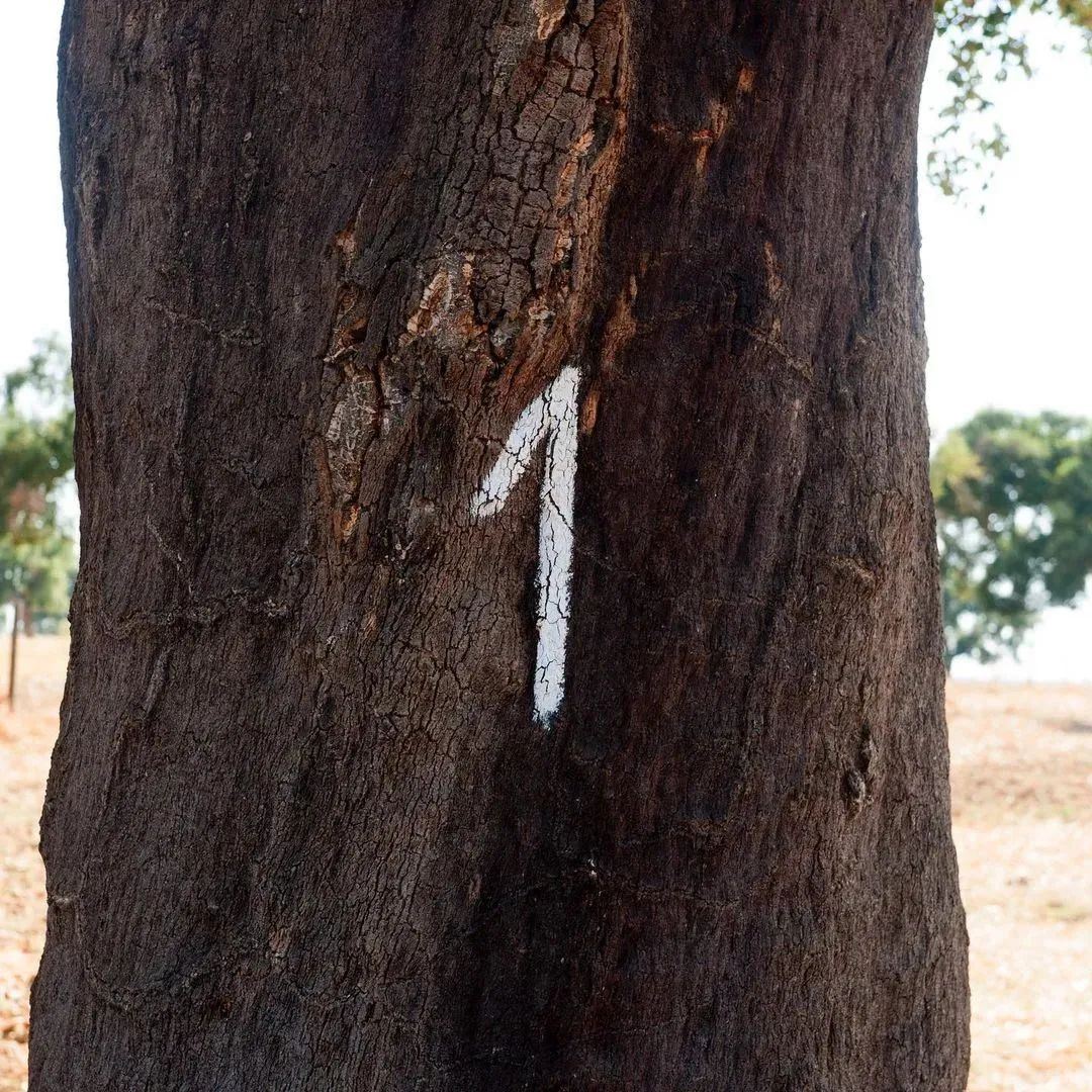 每次采剥后,工人们会用油漆在树干上标注时间年份,等待下一个采收的9年。通常来讲,一棵栓皮栎的寿命约为200年,可采收次数不超过20次。