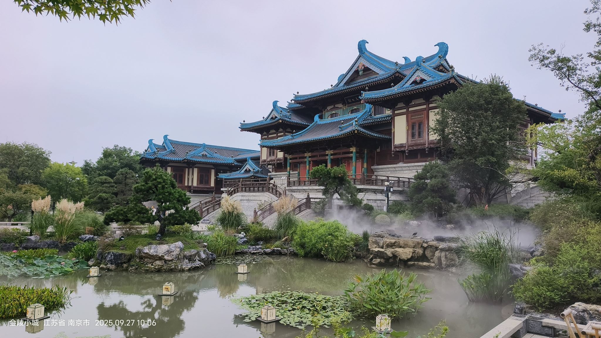 2025年9月27日,于南京江宁区中琅大酒店用过早餐后,遂打车前往三公里外的金陵小城。驻足其间,看朱柱映蓝瓦,遥忆六朝古都的千年风华;漫步野旷沙岸,任时光在此间静静流淌。兴之所至,特写小诗以记此程。
