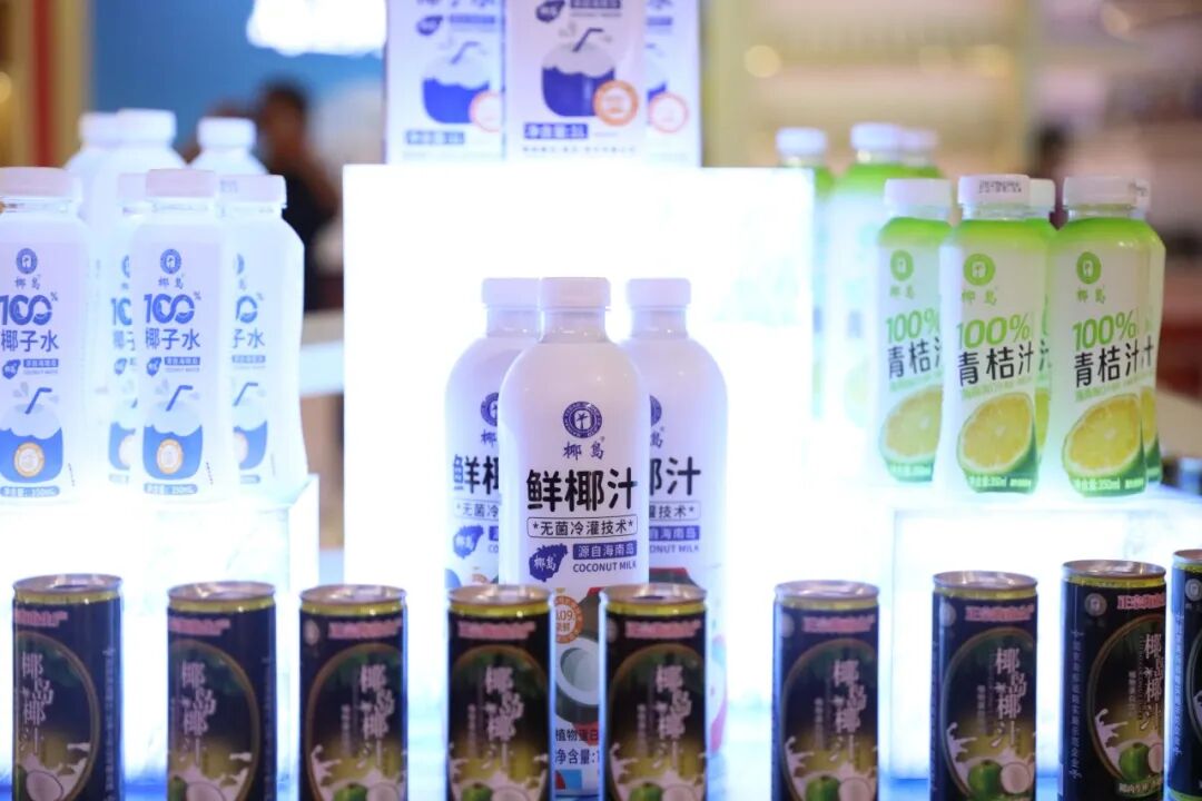其中,作为展厅的吸睛焦点,位于展位门侧及门口的发光岛台,以及展陈其上的椰岛佳品系列、椰岛果汁以及椰子水饮品,也引得参观嘉宾纷纷打卡。