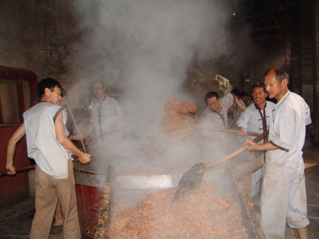 镜头随着陈新建的视角,展示了赊店老酒的制曲工艺。