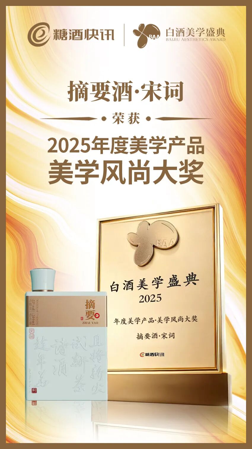 近日,经过激烈的竞争角逐,以及综合网友投票结果、产品的市场口碑、营销话题热度和行业影响力等因素,“2025年度美学产品网络评选”正式揭晓了获奖名单。其中,凭借着独树一帜的美学设计以及上游产区的醇柔品味,摘要酒·宋词获评“2025年度美学产品·美学风尚大奖”。