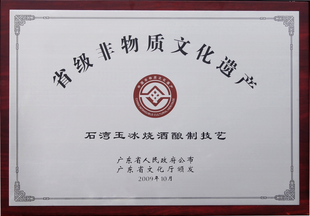 权威背书:1984、1989年石湾玉冰烧被评为“国家优质酒”,2007年,石湾玉冰烧被评为国家授予“中国历史文化名酒”称号,“石湾”被认定“中国驰名商标”。2009年7月20日,石湾玉冰烧酒酿造技艺正式入选广东省第三批非物质文化遗产名录,这标志着石湾酒厂这种百年传统酿制技艺得到政府、社会的认可。