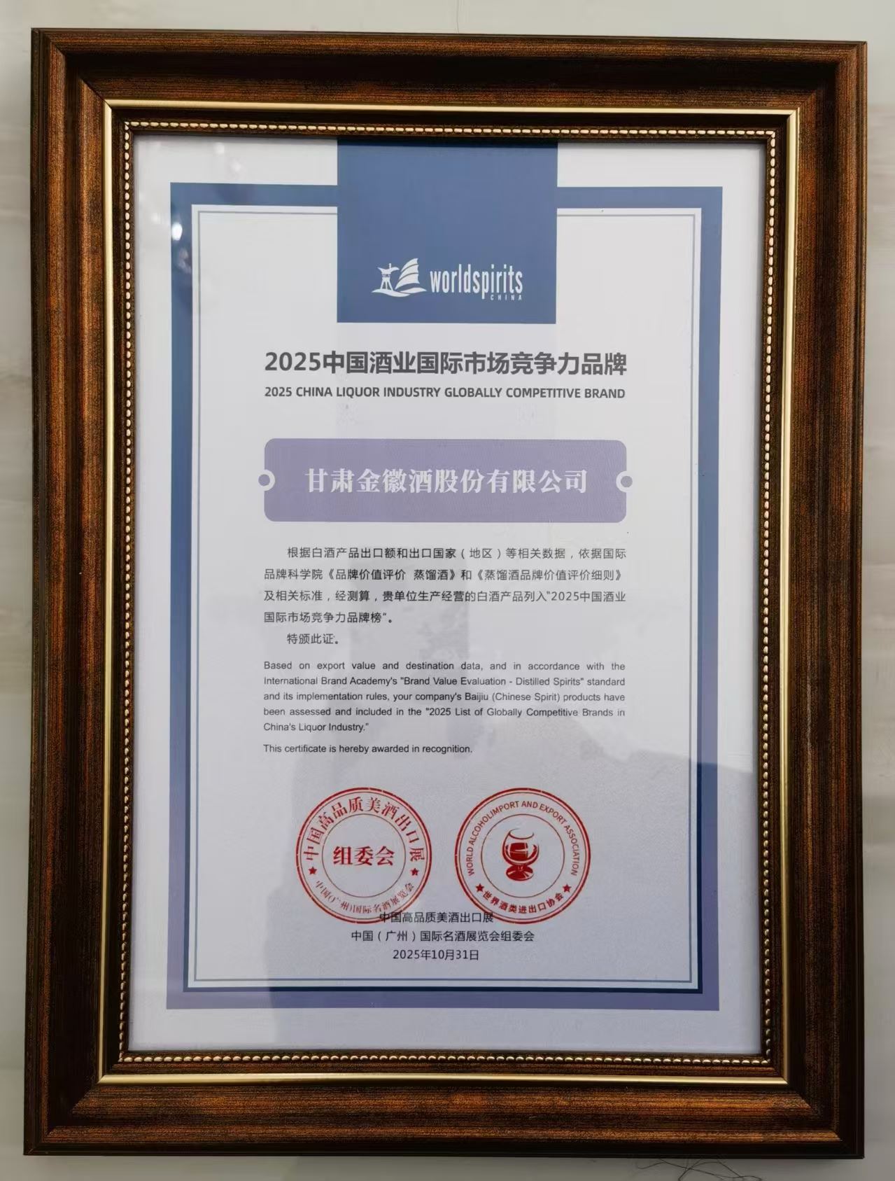 同日,中国酒业国际市场竞争力品牌名单发布,金徽酒入选2025中国酒业国际市场竞争力品牌,彰显出中国名酒在全球市场中的竞争力与品牌影响力。