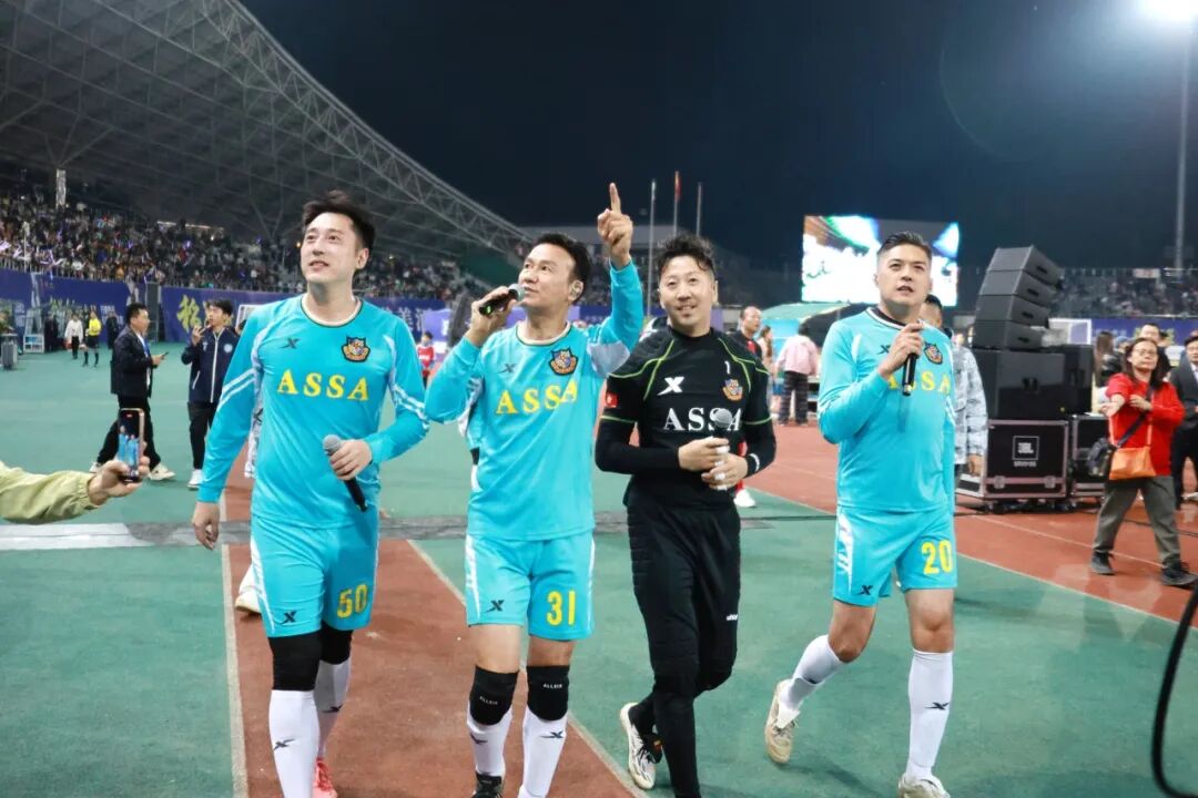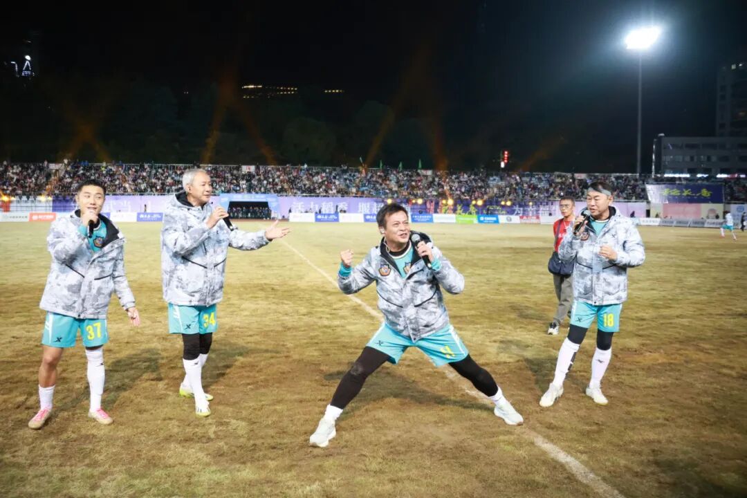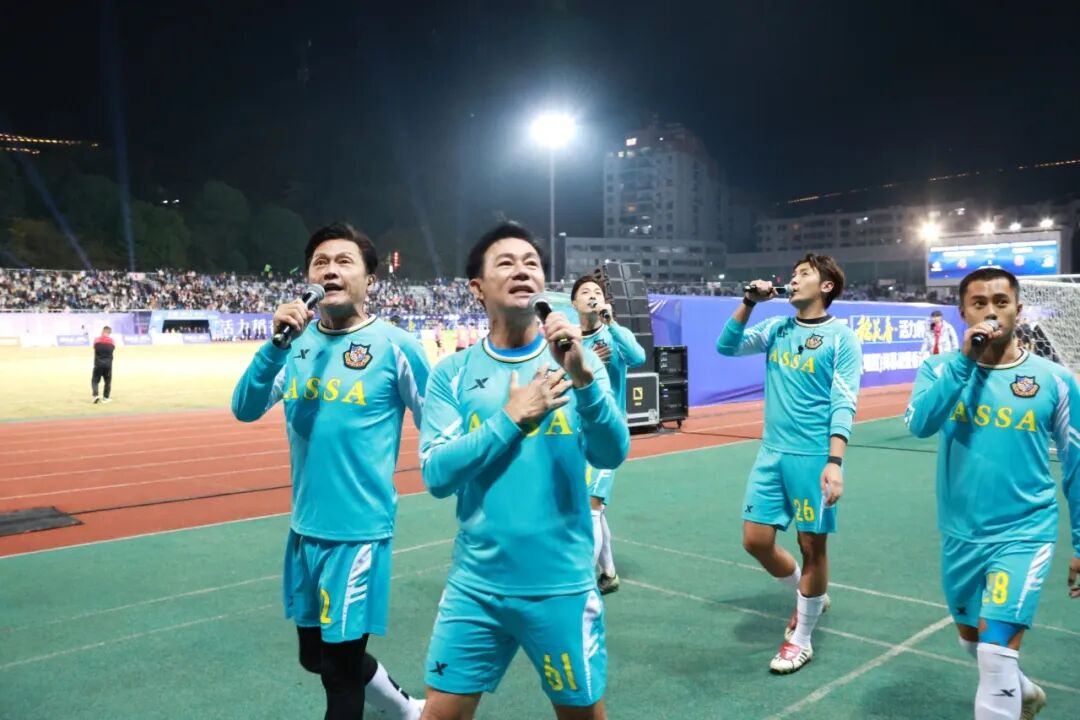 每小节休息时间,港星球员倾情献唱,与球迷热情互动。熟悉的旋律、经典的歌曲,引发无数人的青春回忆,观众沉浸式体验了“足球+音乐+美酒”的活力之夜。
