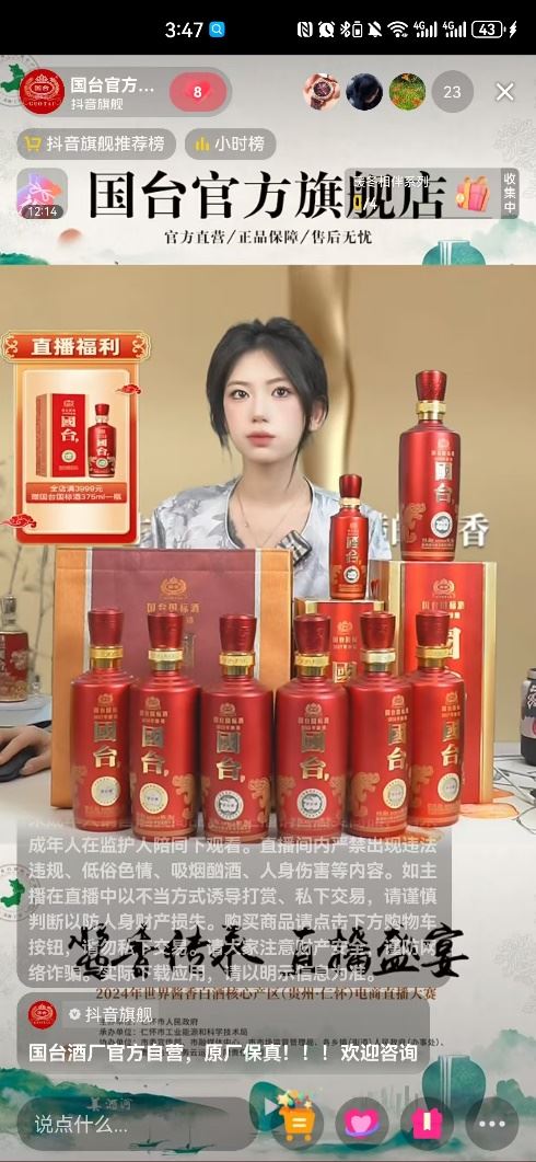 目前,国台已构建起“自营渠道 + 新媒体直播”双轮驱动的消费者互动生态。在自营渠道方面,目前国台电商已完成京东、抖音、快手、拼多多、视频号等全渠道布局,形成全域覆盖的官方旗舰店矩阵。在新媒体直播方面,国台打造了“官方直播 + 达人矩阵 + 内容营销”的高效体系,在为消费者提供“多快好省”服务的同时,讲好国台品牌故事,让更多人了解国台酒,并爱上国台酒。