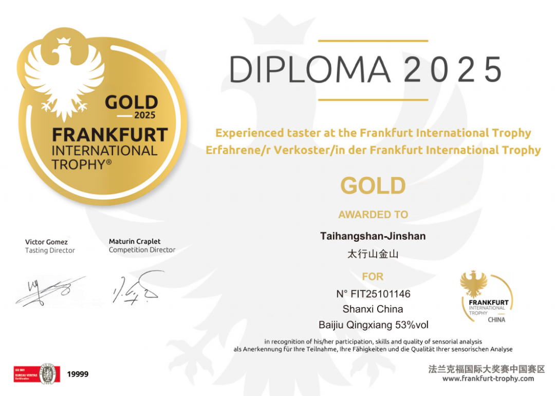 法兰克福国际酒类大奖赛素以评审标准严苛著称,其金奖代表了对酒品无瑕品质的至高肯定。太行山白酒的此次折桂,打破了葡萄酒、烈酒长期主导顶级奖项的格局,为中国传统白酒在国际舞台上书写了浓墨重彩的一笔。