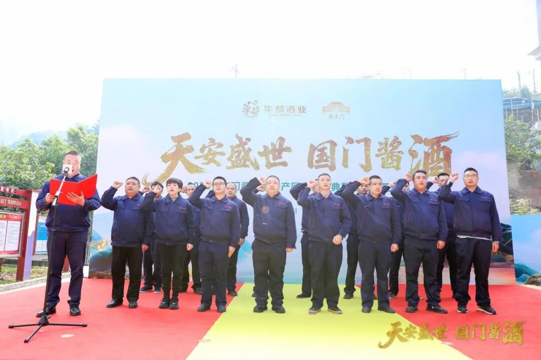 在生产班长的带领下,一线酿酒师集体宣誓,对着台下诸多嘉宾许下 “质量是金、以质为本、不计成本、珍视年份、坚守传统、勇于创新、良心酿酒”的承诺。