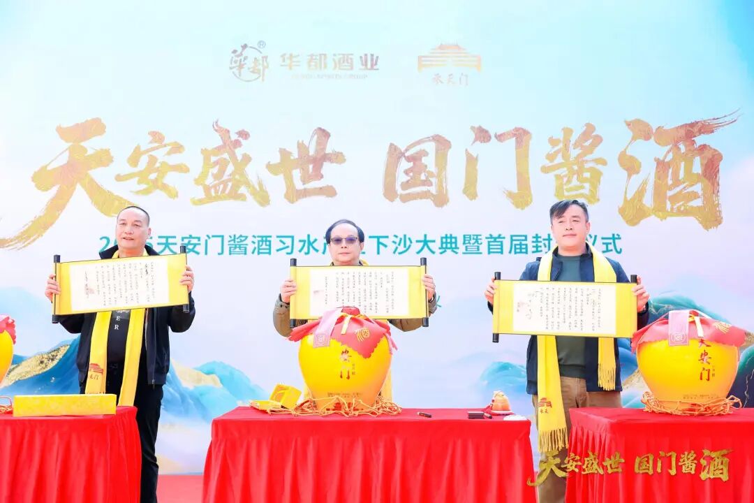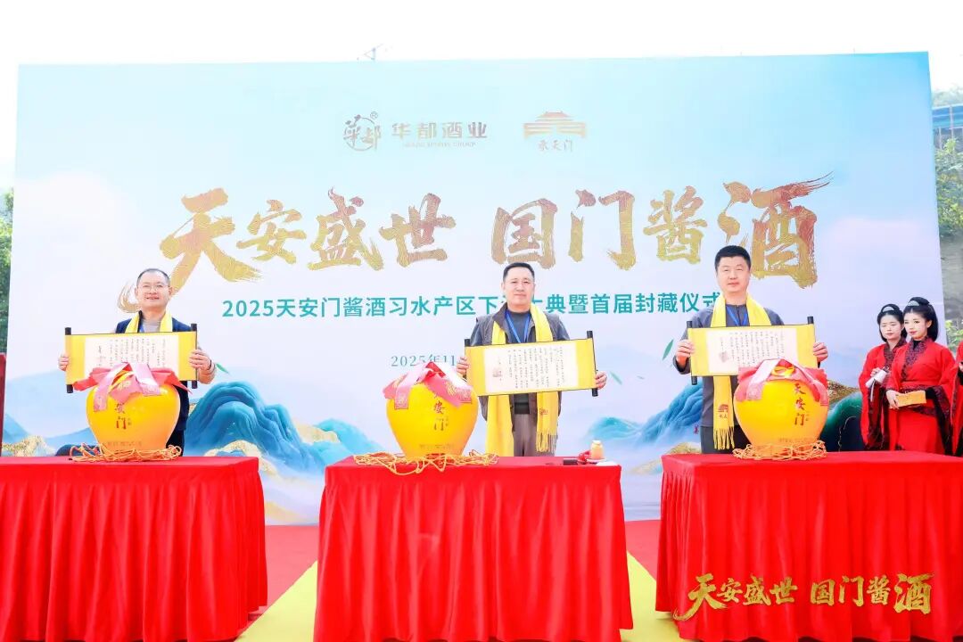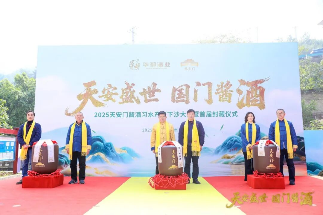2025年11月27日,天安门酱酒在贵州习水承天门酒厂举办了下沙大典和首届封藏仪式。活动当天,企业领导、行业专家和全国各地合作伙伴齐聚赤水河畔,一起体验了酱酒生产的核心环节“重阳下沙”,并通过一场传统的封藏仪式,正式开启了新一年的酿酒季。