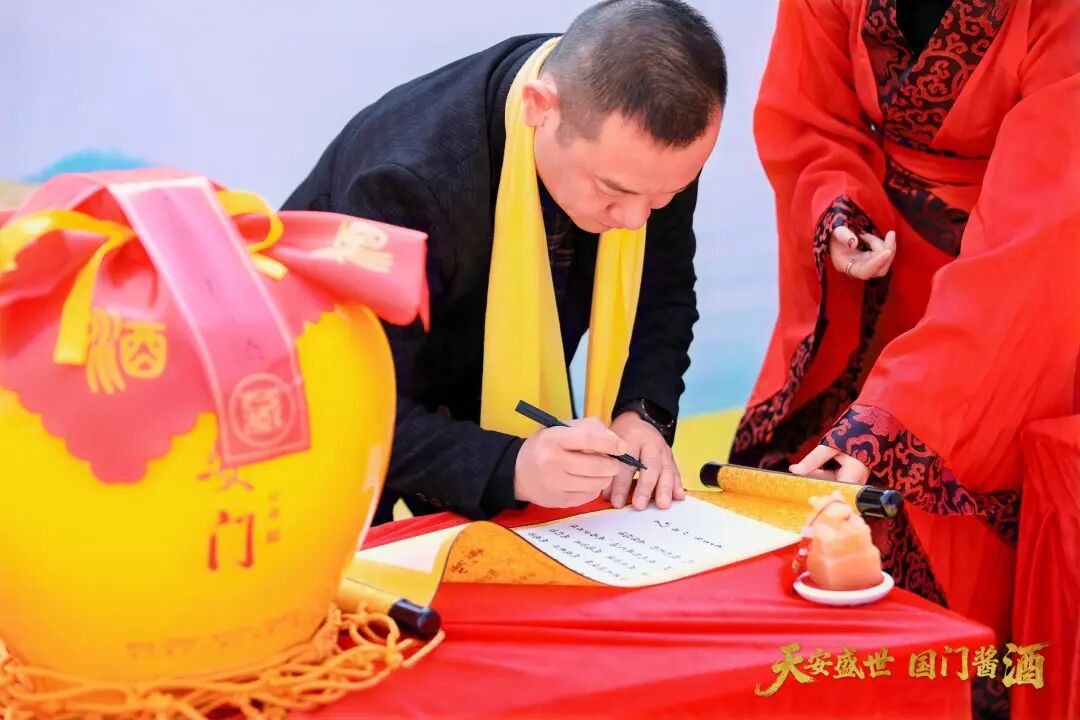 新酒启动酿造,老酒开始封藏,在主持人的引导下,六位嘉宾“正衣冠,肃仪容”,封存“匠心臻品”。红绸覆顶、金绳系福,将传统民俗文化之中的吉祥寓意传递给参与者;鸣锣认主环节的“锣声一响,吉运满堂”,为仪式划下一个完美句点。