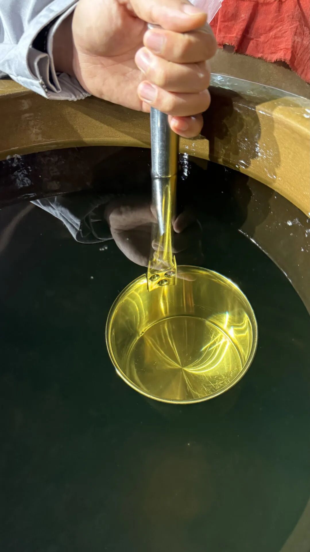 当王杰和妻子打开尘封的酒坛,映入眼帘的景象令他们震撼:当年抵押时仅有两三年的新酒,在经过漫长的静默陈化后,已蜕变为璀璨夺目的金黄酒体,静静诉说着时间的力量。