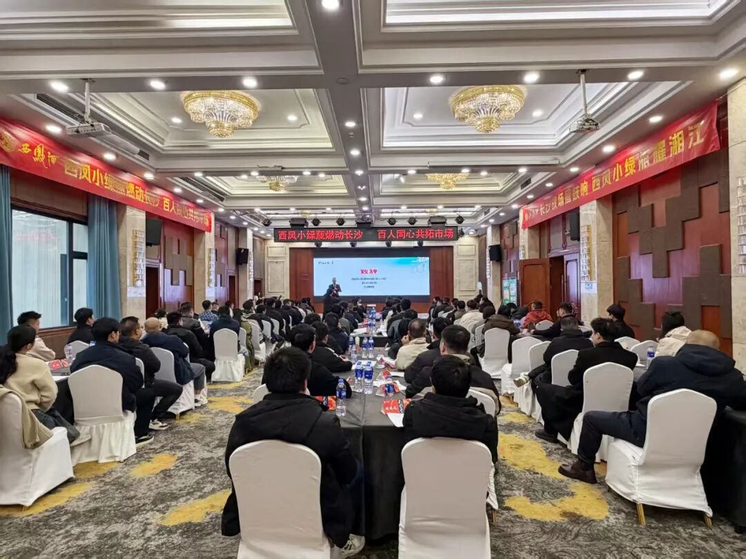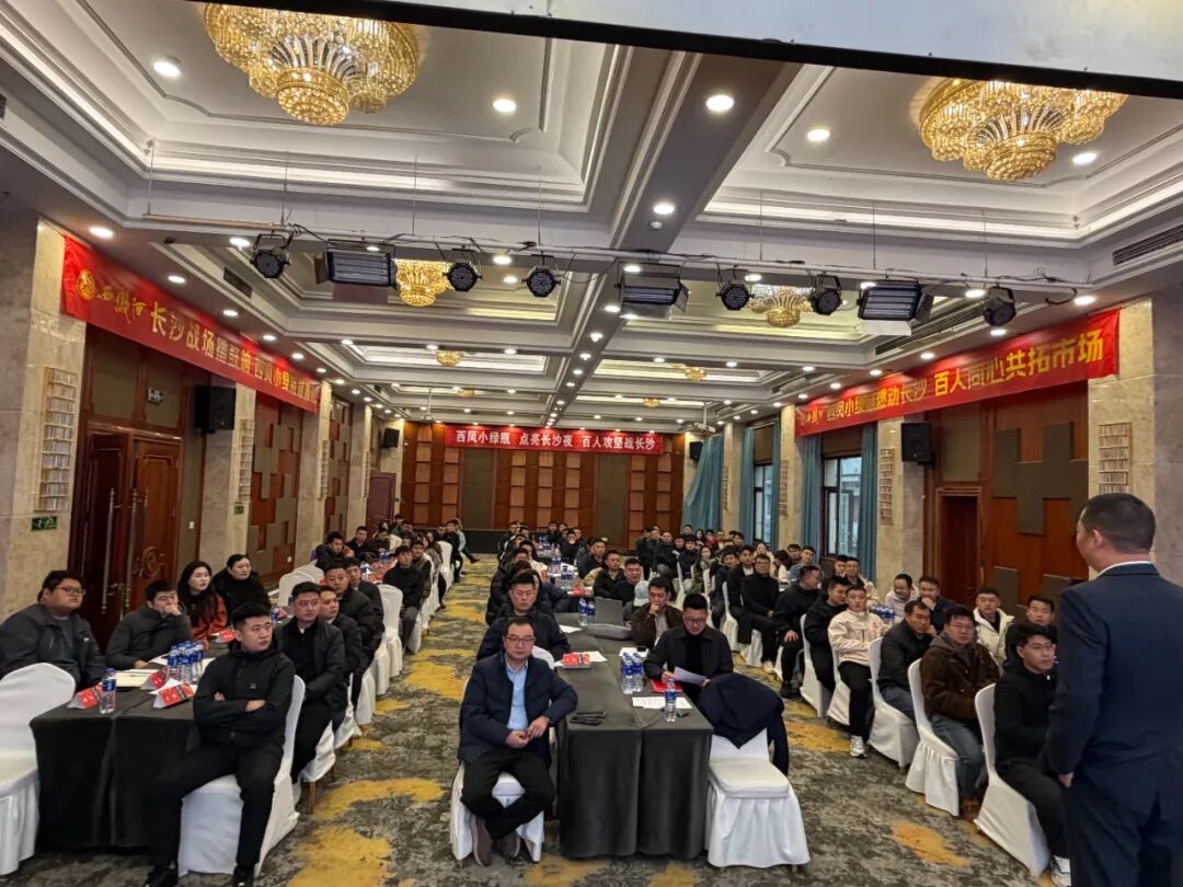 12月24日,西凤酒小绿瓶铺市活动启动会在长沙圆满召开。本次会议以“西凤小绿瓶燃动长沙,百人同心共拓市场”为主题,西凤酒营销管理公司副总经理王继锋、浙江分公司负责人熊银华、湖南分公司负责人王红儒及南部市场7个分公司八十余名业务人员,联合浙江大浙乡贤传媒有限公司负责人陈文杰、西凤酒项目负责人黄辉以及大浙公司二十余名业务团队,共计百余位业务团队齐聚一堂,共同为小绿瓶在长沙市场的全面推广擘画蓝图、凝聚奋进合力。