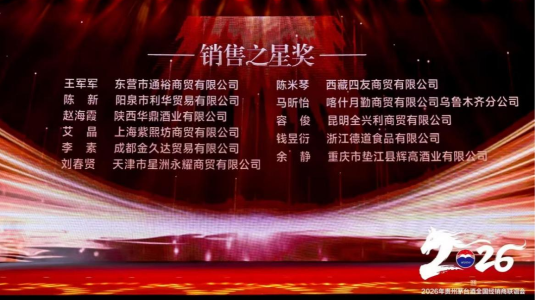 12月28日,2026年茅台全国经销商大圆满召开,会议以“坚持以消费者为中心,全面推进茅台酒营销市场化为转型”为主题,全面总结2025年茅台酒营销工作成效,系统安排部署2026年工作,进一步统一思想、凝聚共识,推动茅台酒市场营销工作再上新台阶,同时对2025年度表现突出的243家渠道商、联谊会及个人进行表彰。会上,华鼎酒业科技二路茅台专卖店赵海霞凭借扎实的业务能力、优异的销售业绩及贴心客户服务,荣获“销售之星奖”。这一荣誉既是对该店员个人能力的肯定,也彰显了华鼎酒业终端销售团队扎实的业务功底与优质服务水平。