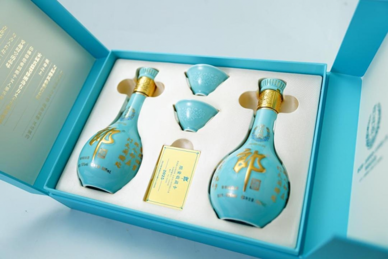 酒体内核延续青花郎核心优势,源自赤水河左岸庄园酱酒产区,经天宝洞洞藏陈酿而成,酱香突出、酒体醇厚,每一口都饱含“郎味十足”的陈香底蕴。礼盒配置更显风雅,不仅附有专属限量收藏序列编号,更搭配宋词茶盏分酒器,让“启瓶敬客”的过程成为一场沉浸式文化体验
