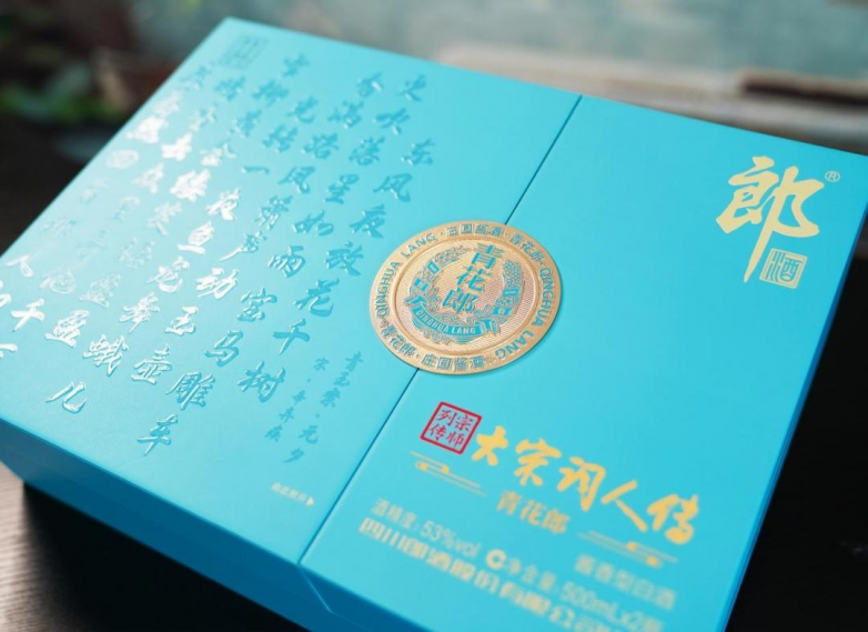 而此次“青花郎×大宋词人传”联名礼盒堪称“可饮用的宋式艺术品”,将宋代美学与酱酒工艺深度融合。外观设计上,瓶身复刻宋式净水瓶清骨,裹覆“似玉非玉而胜玉”的天青汝窑釉色,指尖触达皆是古法烧制的温润质感;24k黄金装饰烤制工艺点睛,镶嵌的宋词名句与浮雕金“郎”字交相辉映,金辉与天青相映成趣,刚柔并济间再现宋人含蓄坚韧的君子风范。无论是自藏还是馈赠,都兼具实用价值与收藏意义。本品已在郎酒白酒京东自营旗舰店上销售