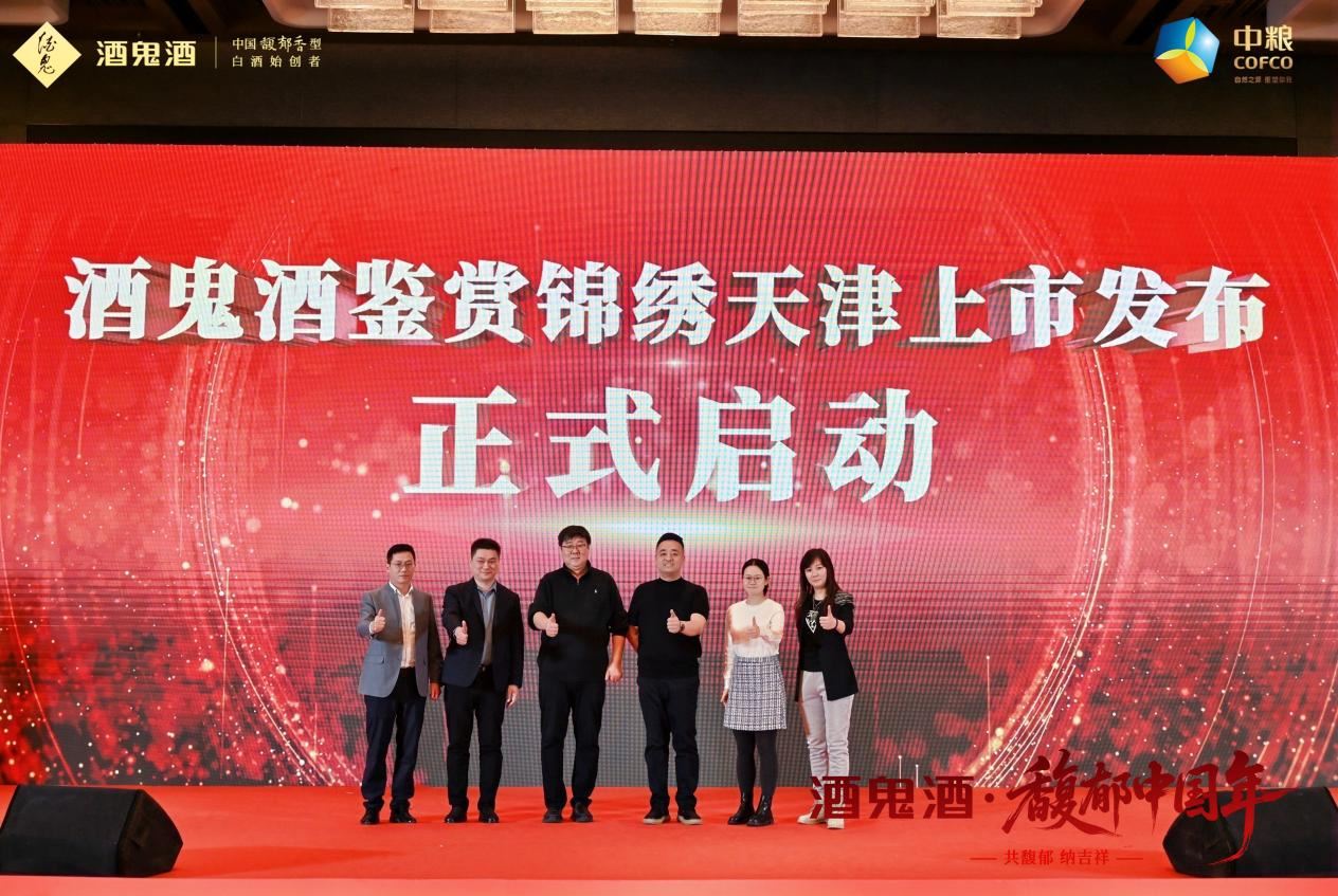 1月11日晚,酒鬼酒透明装鉴赏·锦绣版天津上市发布会隆重举行。酒鬼酒公司党委书记、总经理程军,酒鬼酒公司销售管理中心总经理助理夏柯,天津钰津商贸有限公司总经理杨彤,中茶连锁市场部副总经理王中慧,以及近400位来自核心经销商、终端门店老板及忠实消费者齐聚一堂,共同见证这款鉴赏级新品的璀璨亮相。
