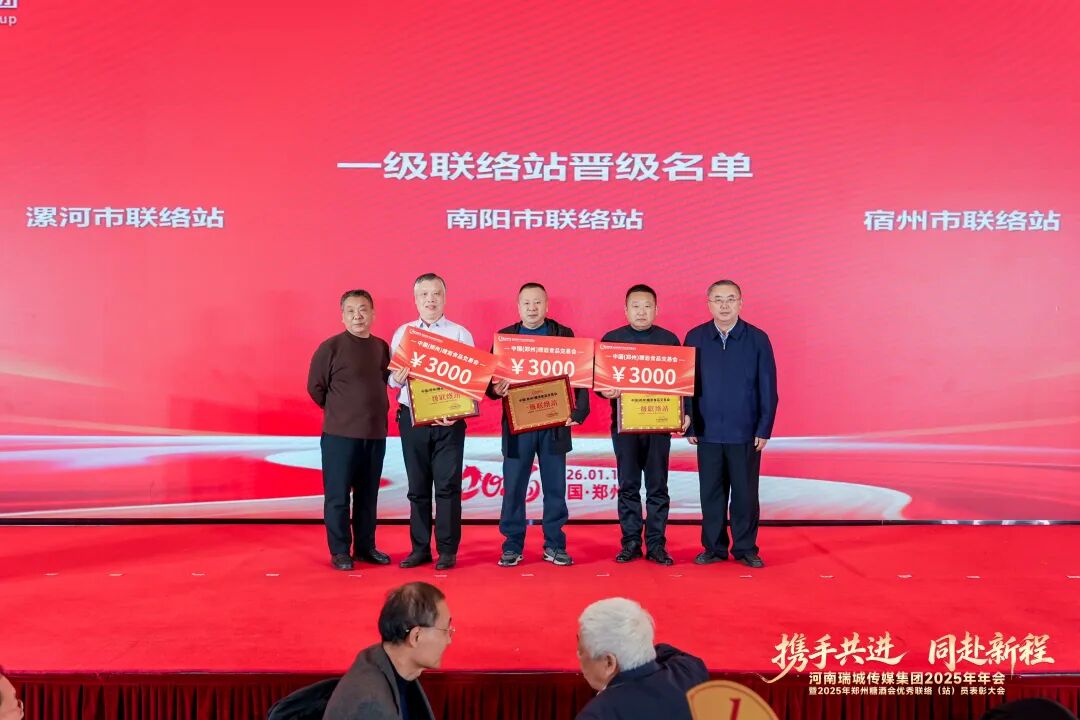 岁序更迭启新程,华章璀璨耀中原。2026年1月17日,以“携手共进,同赴新程”为主题的瑞城传媒集团2025年年会暨2025年郑州糖酒会优秀联络(站)员表彰大会在郑州建国饭店隆重举行。