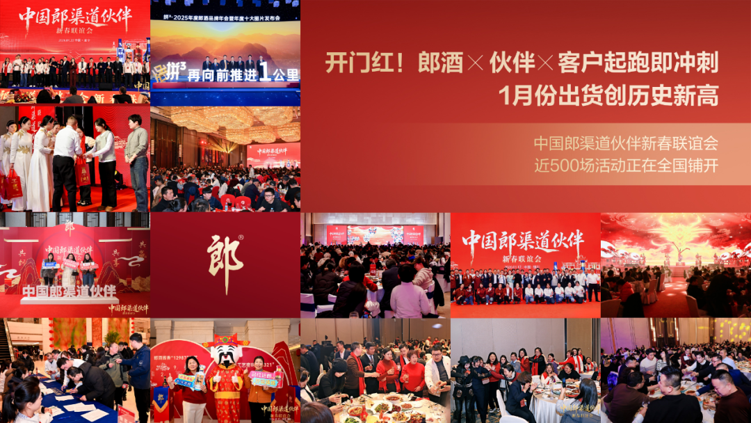 与此同时,郎酒2025年拼的精神和进攻性举措,在2026年还在延续,体现了强有力的增长惯性。一月以来,近500场“中国郎”新春渠道伙伴联谊会如红色风暴般席卷全国,深入近300个区县,凝聚近二十万合作伙伴,在消费端形成了“千商汇聚、万人共赴”的火热景象。