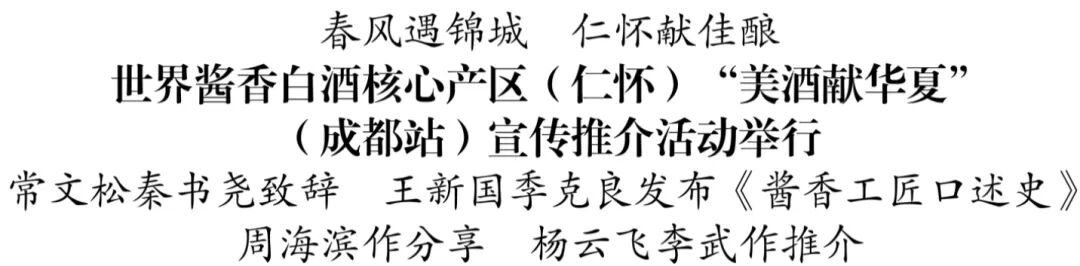 3月23日,世界酱香白酒核心产区(仁怀)“美酒献华夏”(成都站)宣传推介活动在成都世纪城举行。