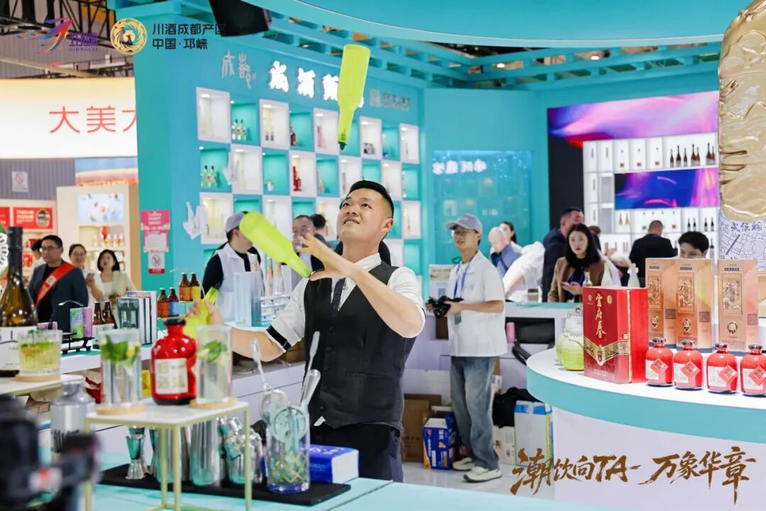 此次邛崃带来的开放式、沉浸式展馆,拥有糖酒会期间最为瞩目的自由调酒吧台,并通过“自由调饮、场景体验、互动打卡” 的沉浸式玩法,邛崃将千年酒文化与现代潮饮理念深度融合,让Z世代感受到白酒的全新打开方式,实现了“每一个TA都能找到属于自己的那杯酒”的核心目标,也让“天酿之城?潮饮邛崃” 的形象深入人心。