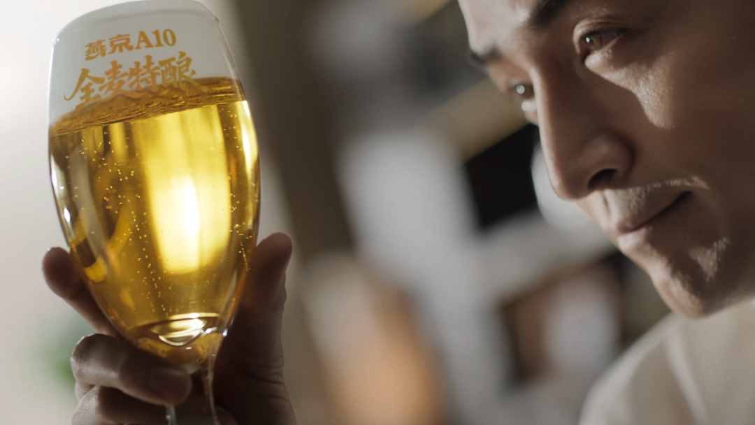 最后一条TVC,则是对前两轮铺垫的集中引爆。视频中,胡歌用“纯粹、匠心、经典”三个关键词,完成了对燕京A10乃至整个品牌精神的定调。这不再是单纯的工艺描述,而是一种价值观的传递。胡歌将“A”的解读从“考卷的分数”上升到“人生的执着”,完美地将个人IP与产品名称(A10)和品牌战略(高端化)融为一体。