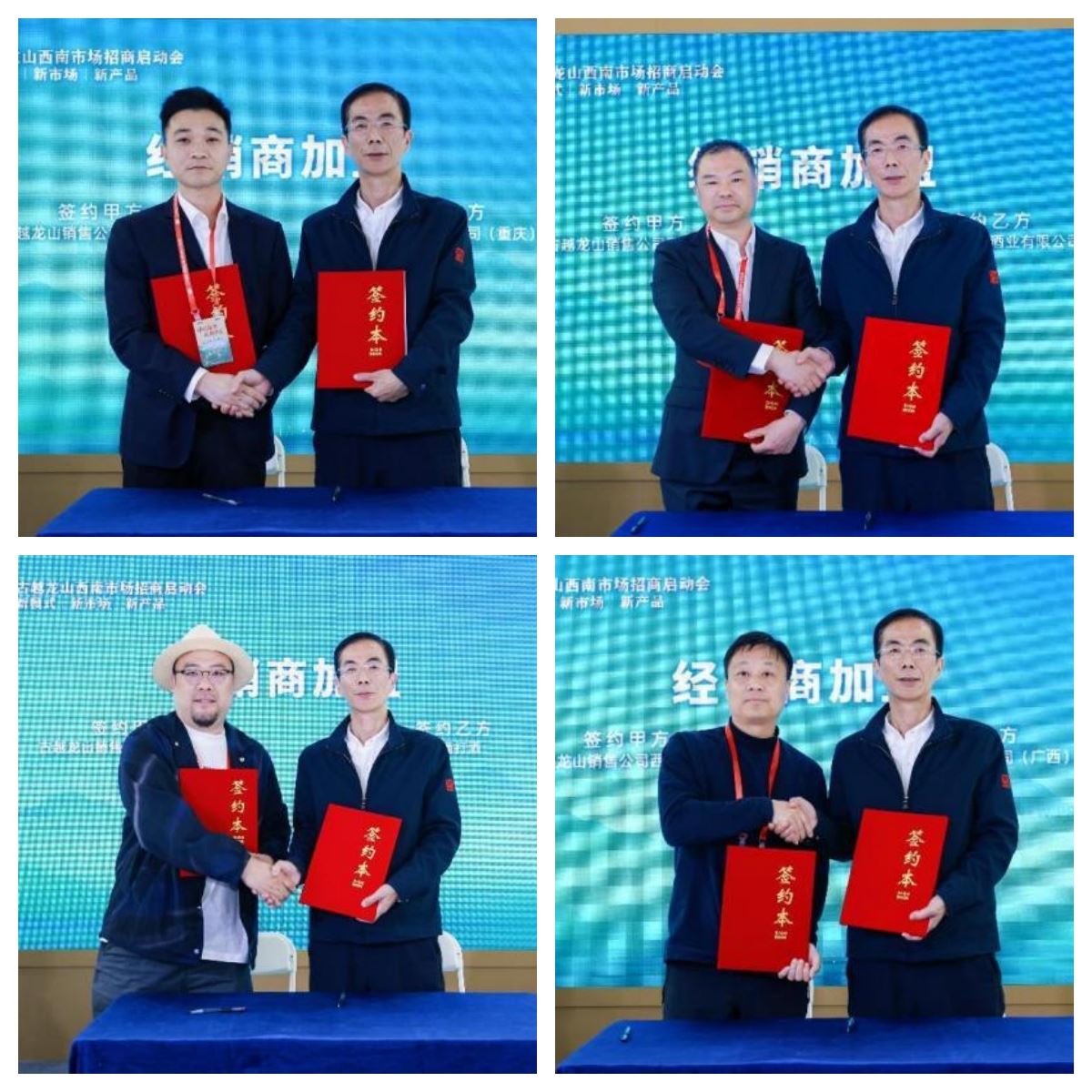 朱国安与越来盛酒业有限公司总经理潘晓、壶中仙酒贸有限公司总经理梁竹军、熊猫打酒创始人程建军、成都三杯两盏酒业有限公司总经理梁金雷等四家经销商伙伴签署加盟协议,标志着西南市场渠道布局迈出坚实一步。