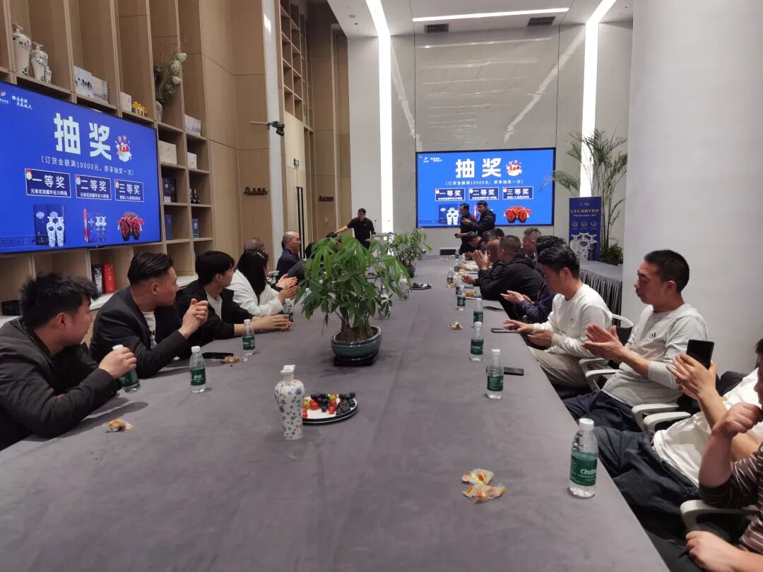 盛会现场,氛围热烈,温情与惊喜交织。精心筹备的幸运抽奖环节惊喜连连,丰厚好礼承载着赊店老酒的感恩之心,将现场气氛一次次推向高潮,欢声笑语间尽显厂商情深。而在重磅定制的专属订货政策加持下,现场合作伙伴备受鼓舞、热情高涨,纷纷踊跃签约下单,签约声、祝贺声、喝彩声此起彼伏,汇成一曲激昂的奋进乐章。最终,郑州市区四大区域答谢会订货总额逆势上扬、再创新高,这一组硬核数据,不仅是市场对赊店老酒品牌实力、产品品质的高度认可,更是对品牌未来发展前景的坚定信心,充分印证了厂商同心、其利断金的强大凝聚力与战斗力。